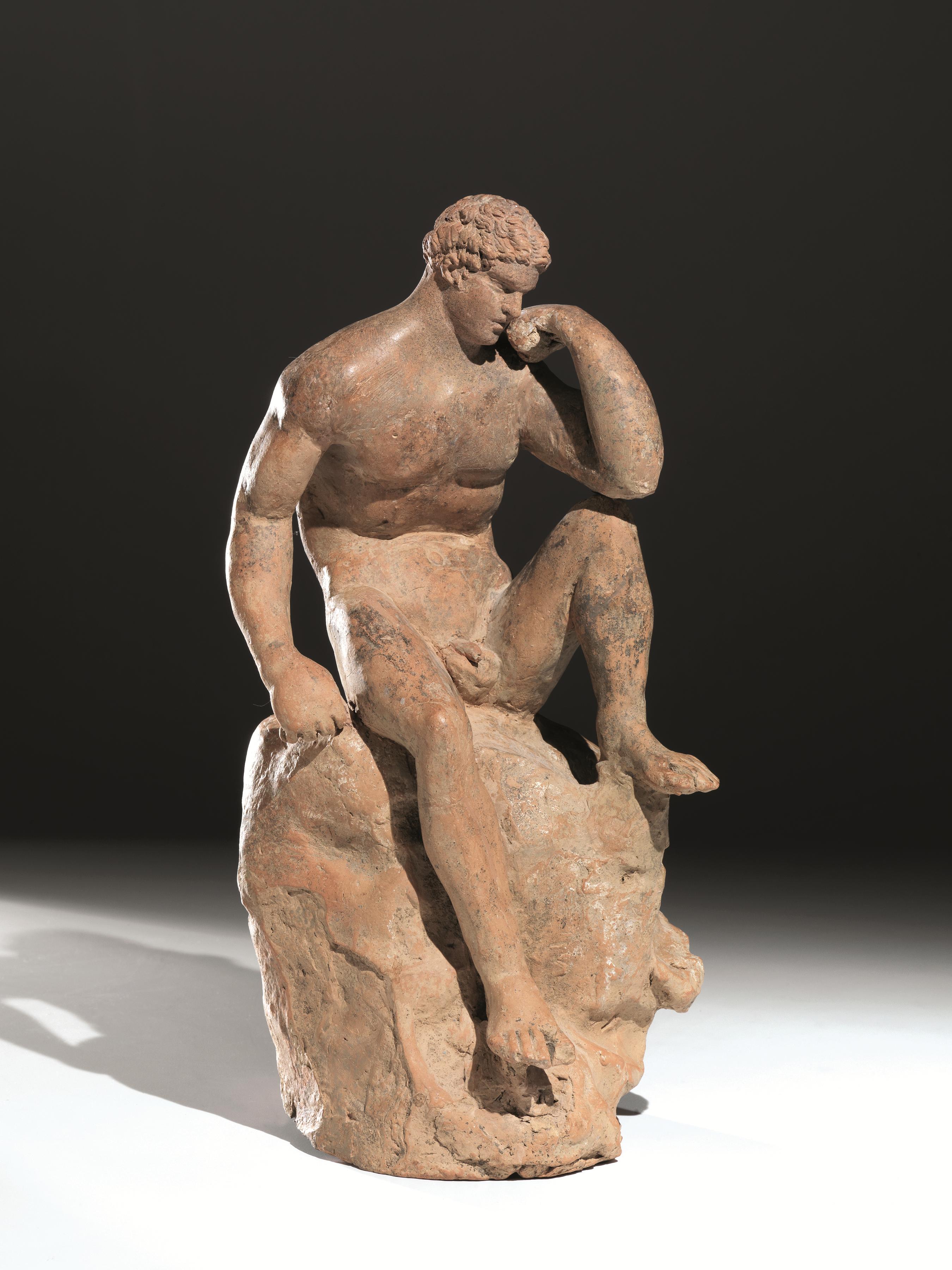 Atleta in riposoMateria e tecnica: argilla figulina rosata, modellata a mano...