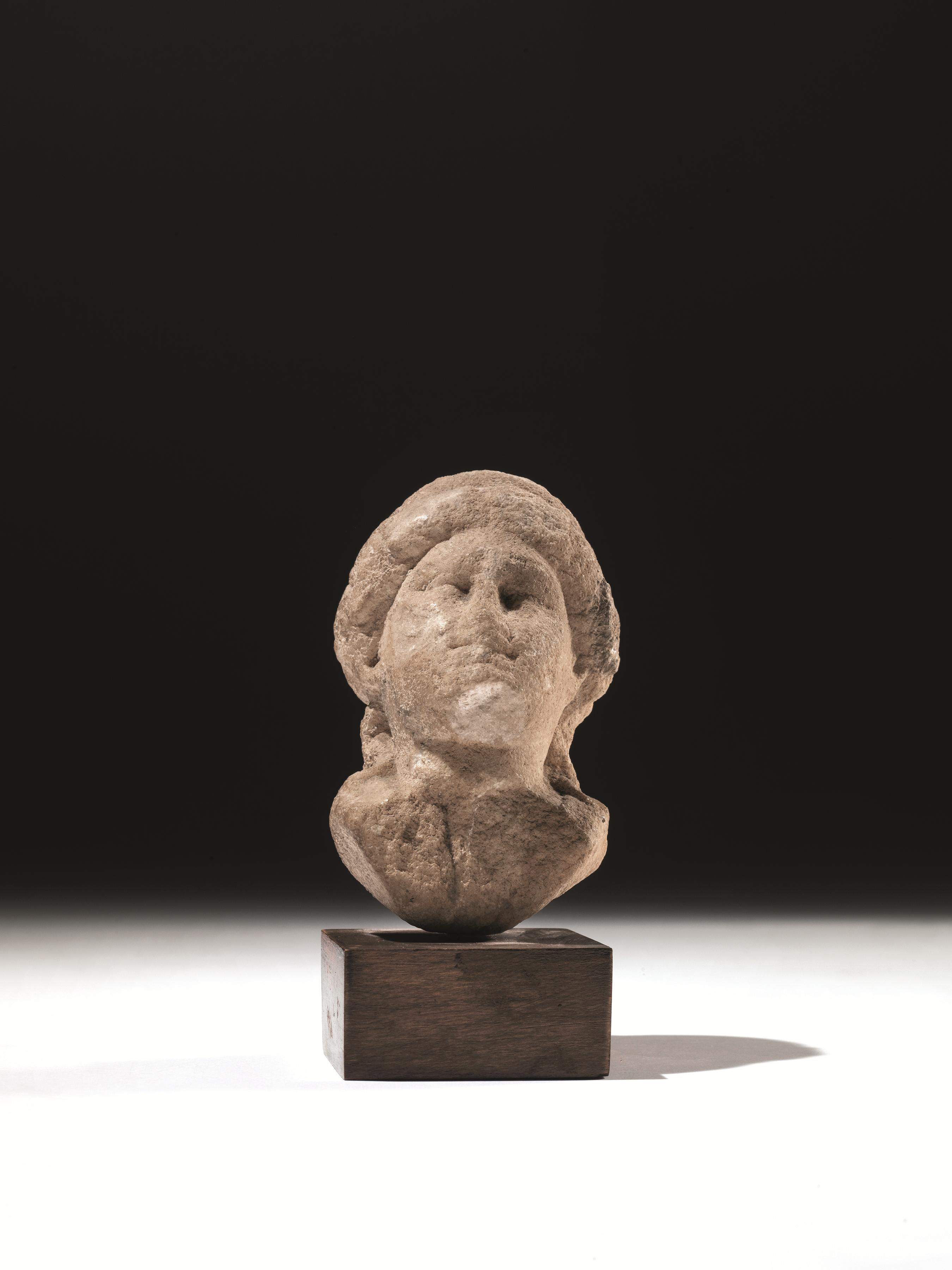 Testina femminileMateria e tecnica: marmo bianco a grana media, scolpito,...