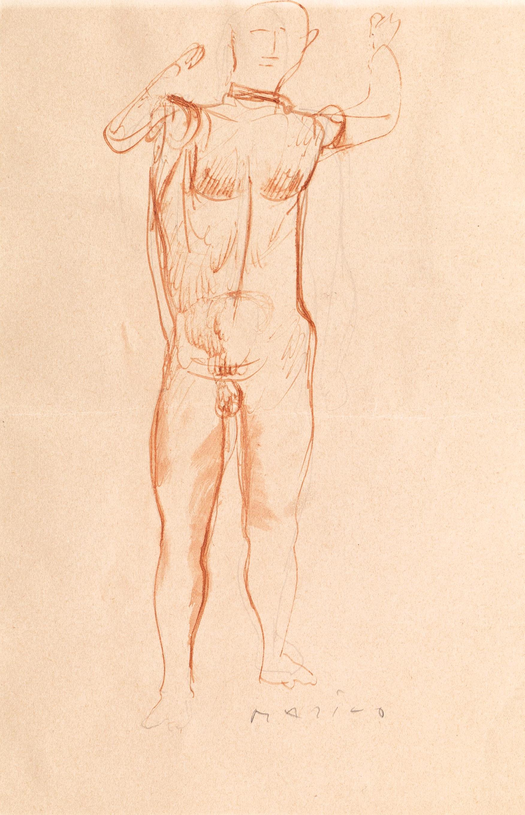 Marino Marini(Pistoia 1901 - Viareggio 1980)NUDO MASCHILEsanguigna e matita...