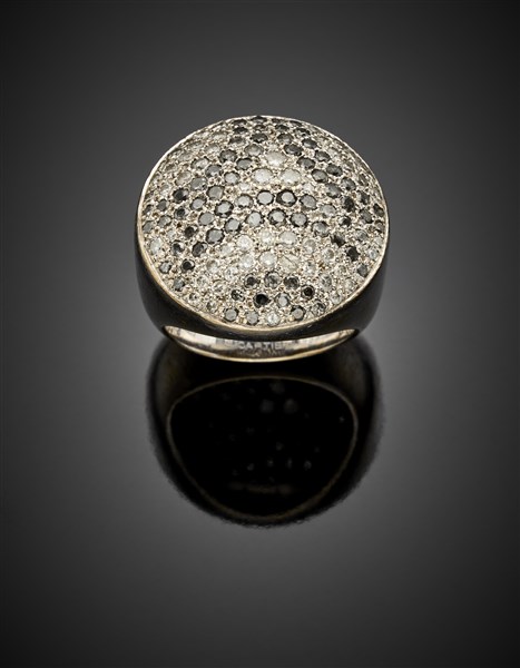 CARTIER Anello in oro bianco rifinito con pavé di diamanti, g 23,40 circa misur