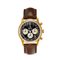 Cassa rotonda e lunetta girevole placcate oro, fondello in acciaio, pulsanti tondi.