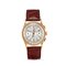 Cassa rotonda in oro rosa 18k, fondello con dedica, pulsanti rettangolari.