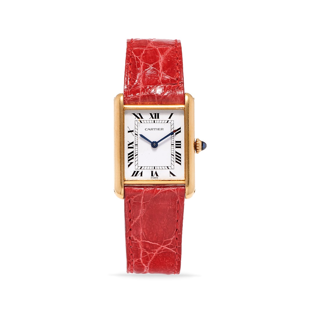 Cinturino in pelle e fibbia deployante Cartier in oro 18k.