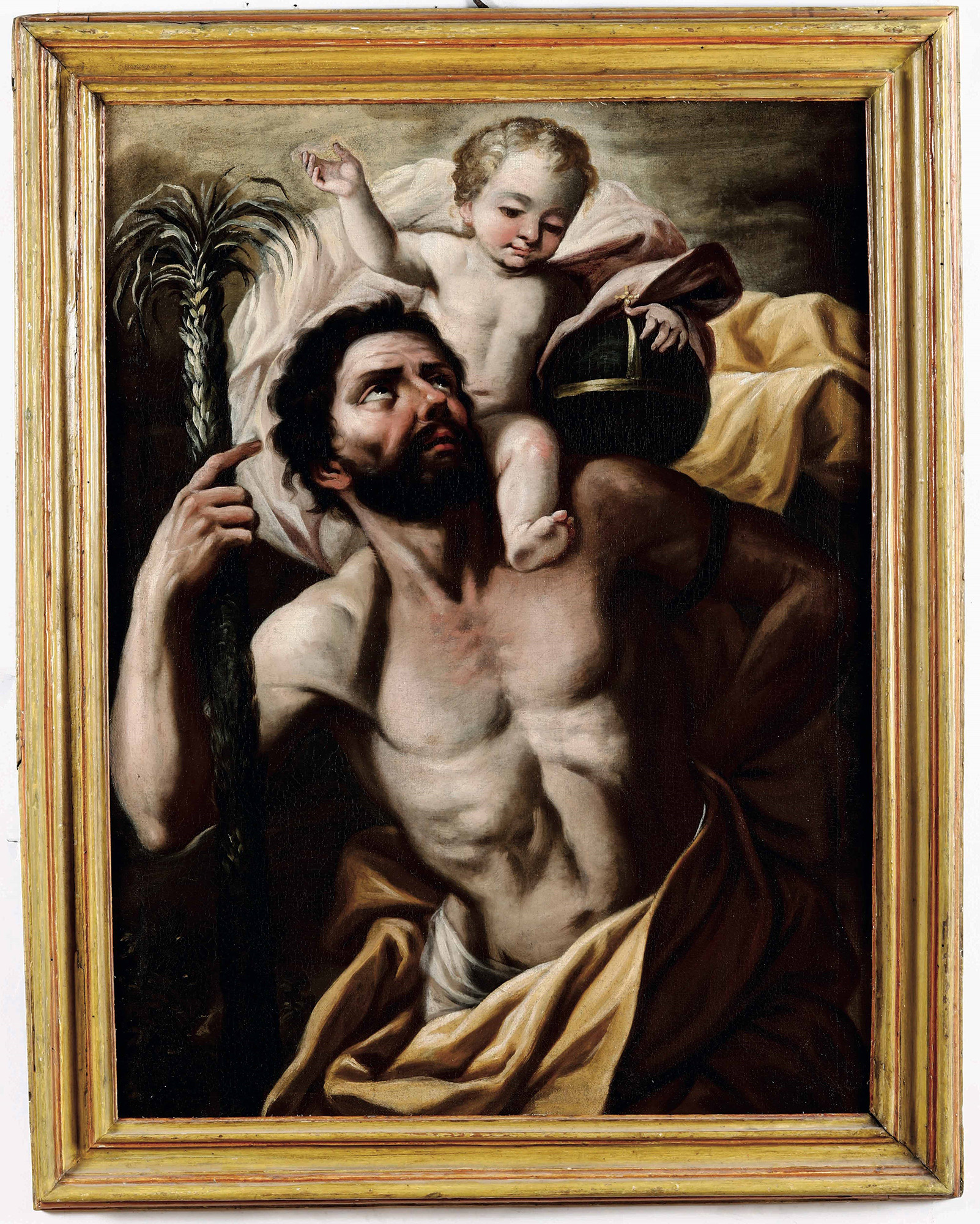 San Cristoforo con il Bambino Scuola italiana del XVII secolo, olio su tela, W. 76 - H. 104 Cm