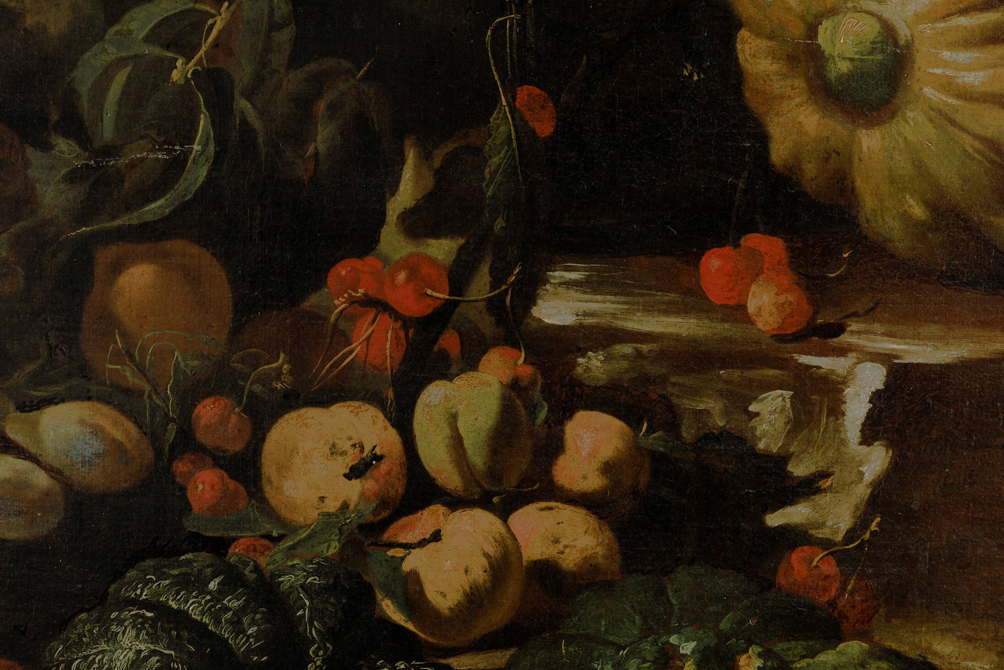 Michelangelo Pace da Campidoglio (1610 Roma-1670 Roma), Natura morta con zucche e frutti, olio su tela, W. 133 - H. 96,5 cm