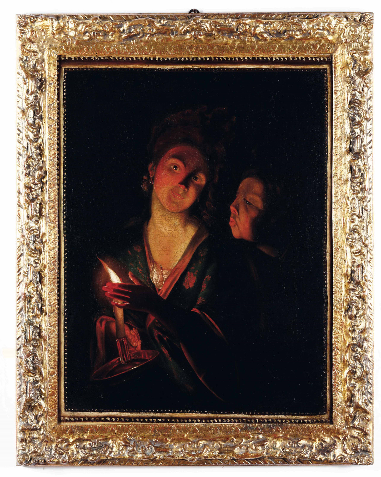 Lotto 84 | Arnold Boonen (1669 Dordrecht-1729 Amsterdam) ambito di, Donna e bambino al lume di candela