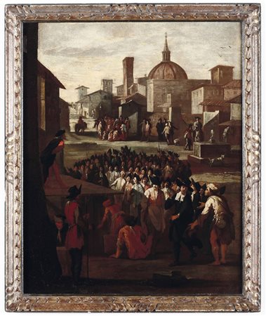 Esibizione teatrale Scuola veneta del XVII secolo, olio su tela, W. 63 - H. 80 Cm