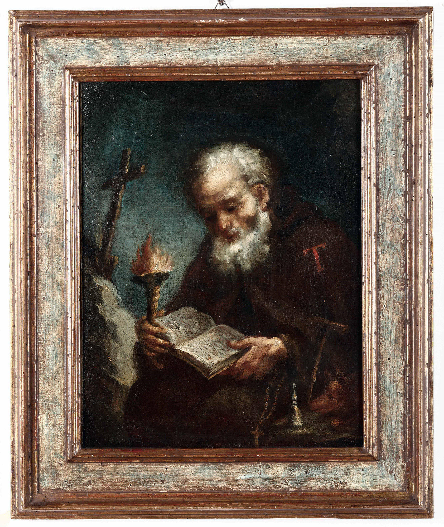 Monaco in preghiera Scuola italiana del XVIII secolo, olio su tela, W. 35 - H. 46 Cm