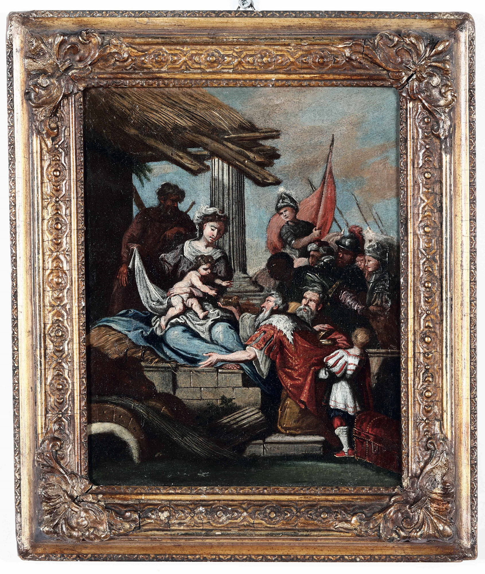 Adorazione dei Magi Scuola italiana del XVIII secolo, olio su tela, W. 19 - H. 24 Cm