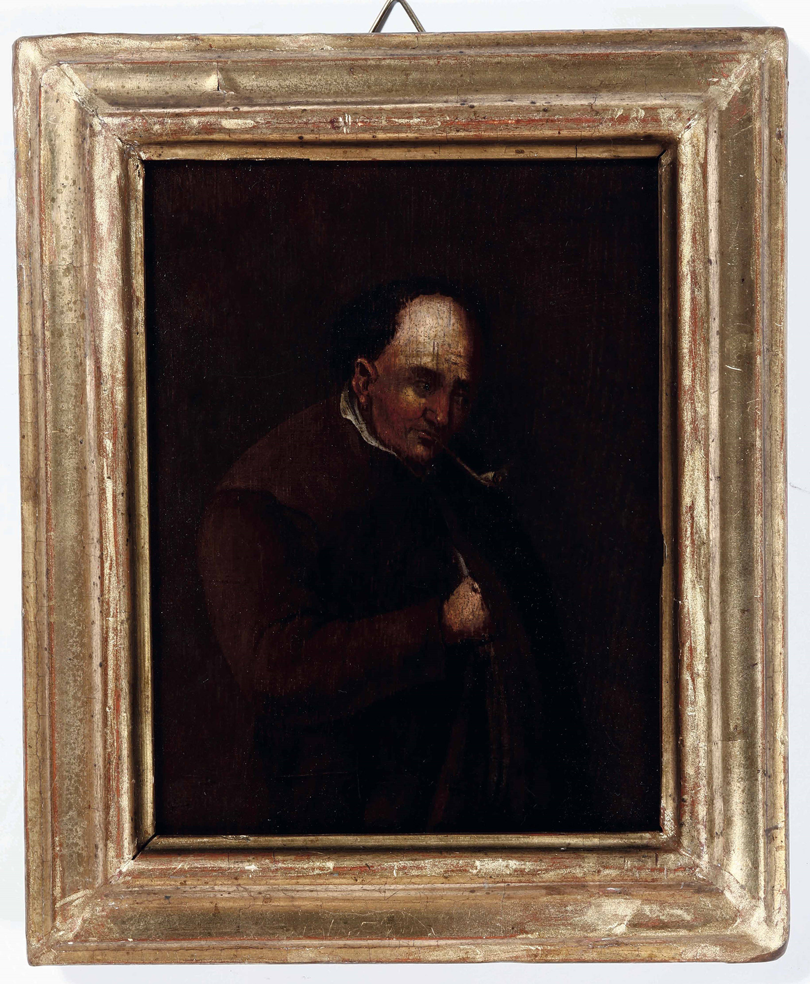 Egbert Van Heemskerck (1634 Harleem-1704 Londra), Contadino che fuma la pipa, olio su tavola, W. 14 - H. 18 Cm