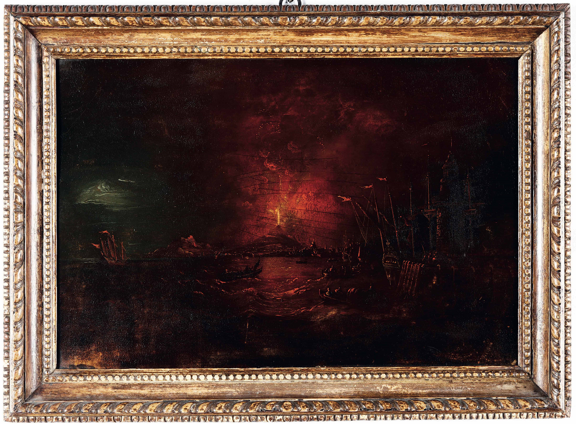 Notturno con vulcano in eruzione Scuola del XVIII secolo, olio su tavola, W. 52 - H. 35 cm