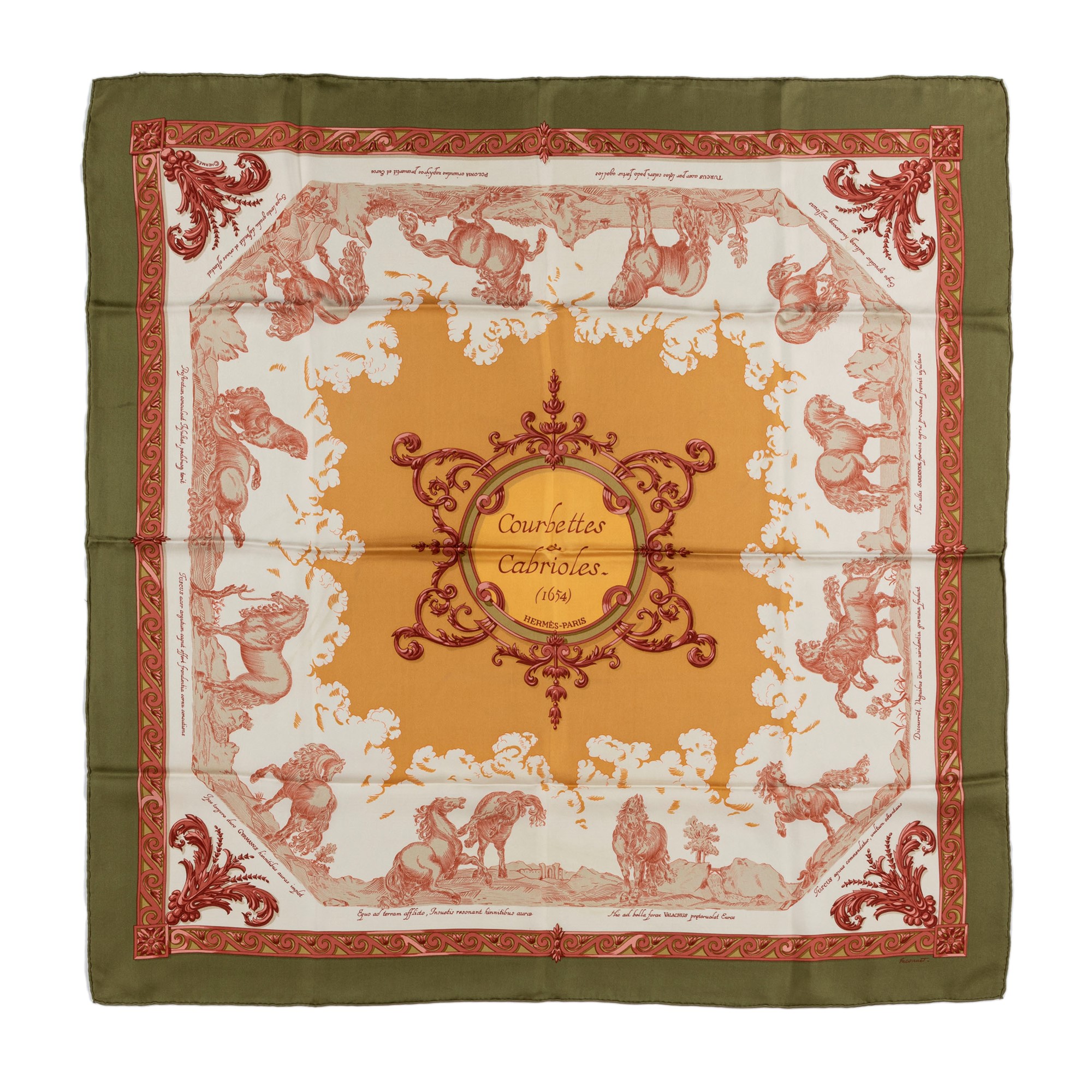 in seta su fondo color senape-panna, bordo color oliva, François Faconnet (lievi difetti).