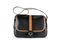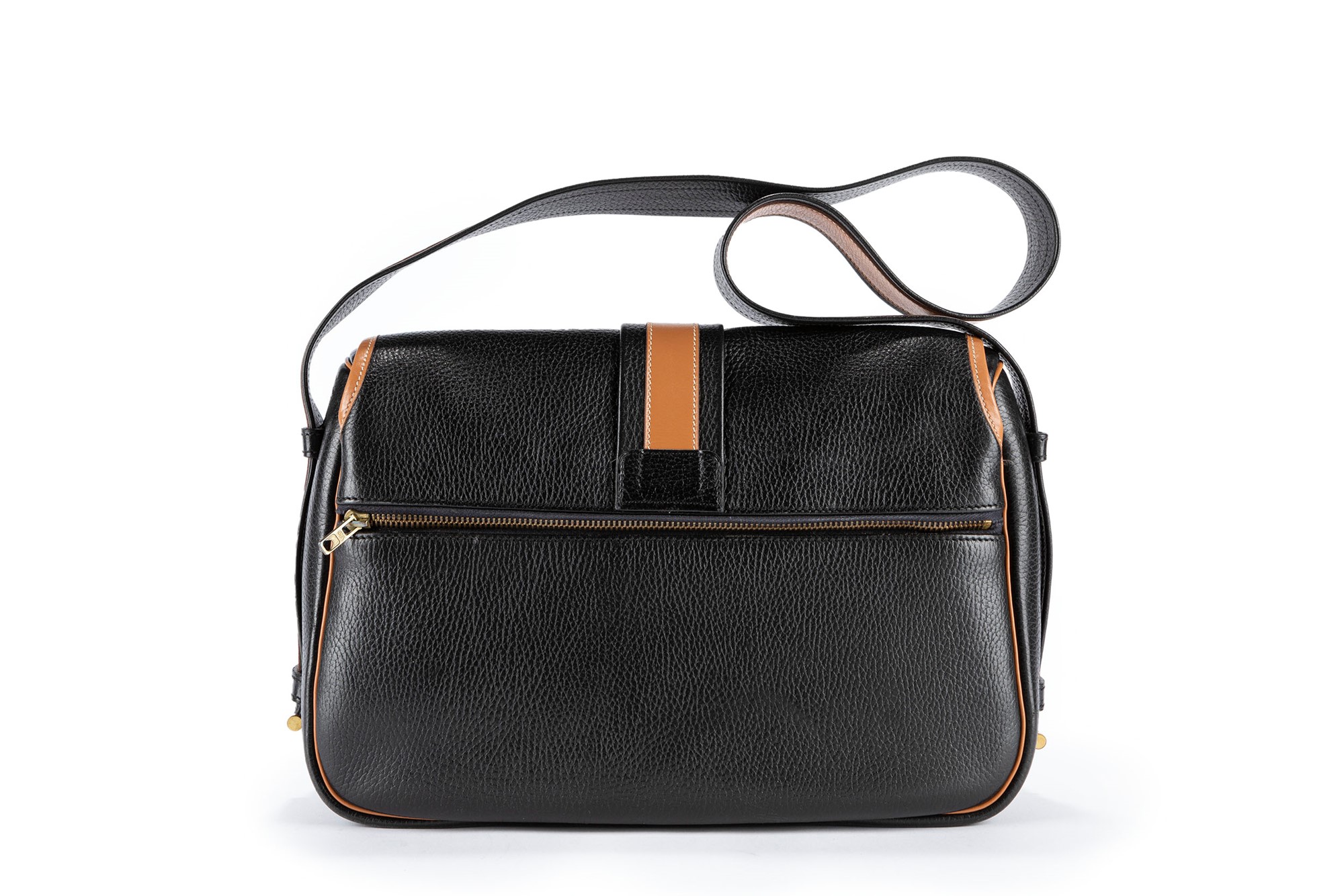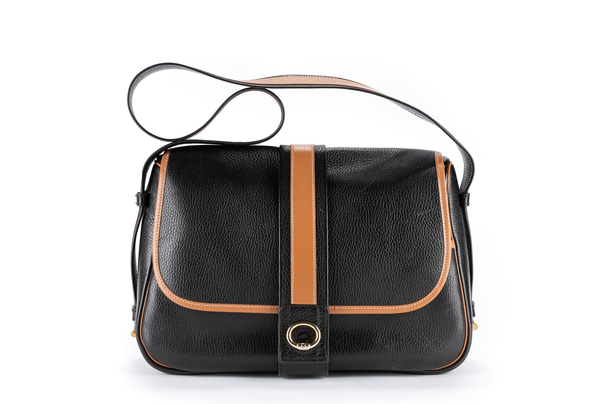 in pelle color nero e nocciola, con tracolla, dettaglio in metallo dorato, cm 35 (lievi difetti).