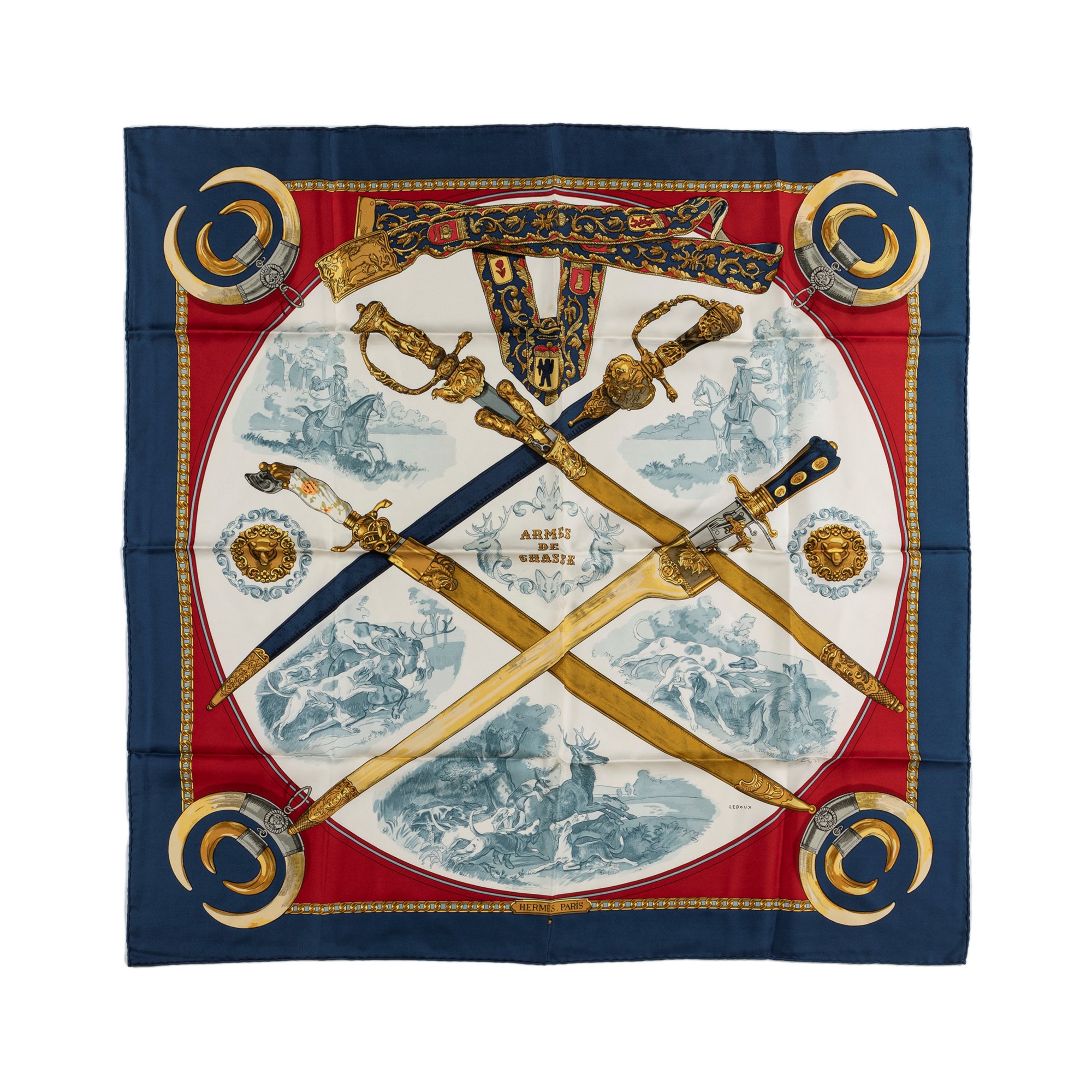 in seta su fondo color bianco, bordo color blu, Philippe Ledoux.