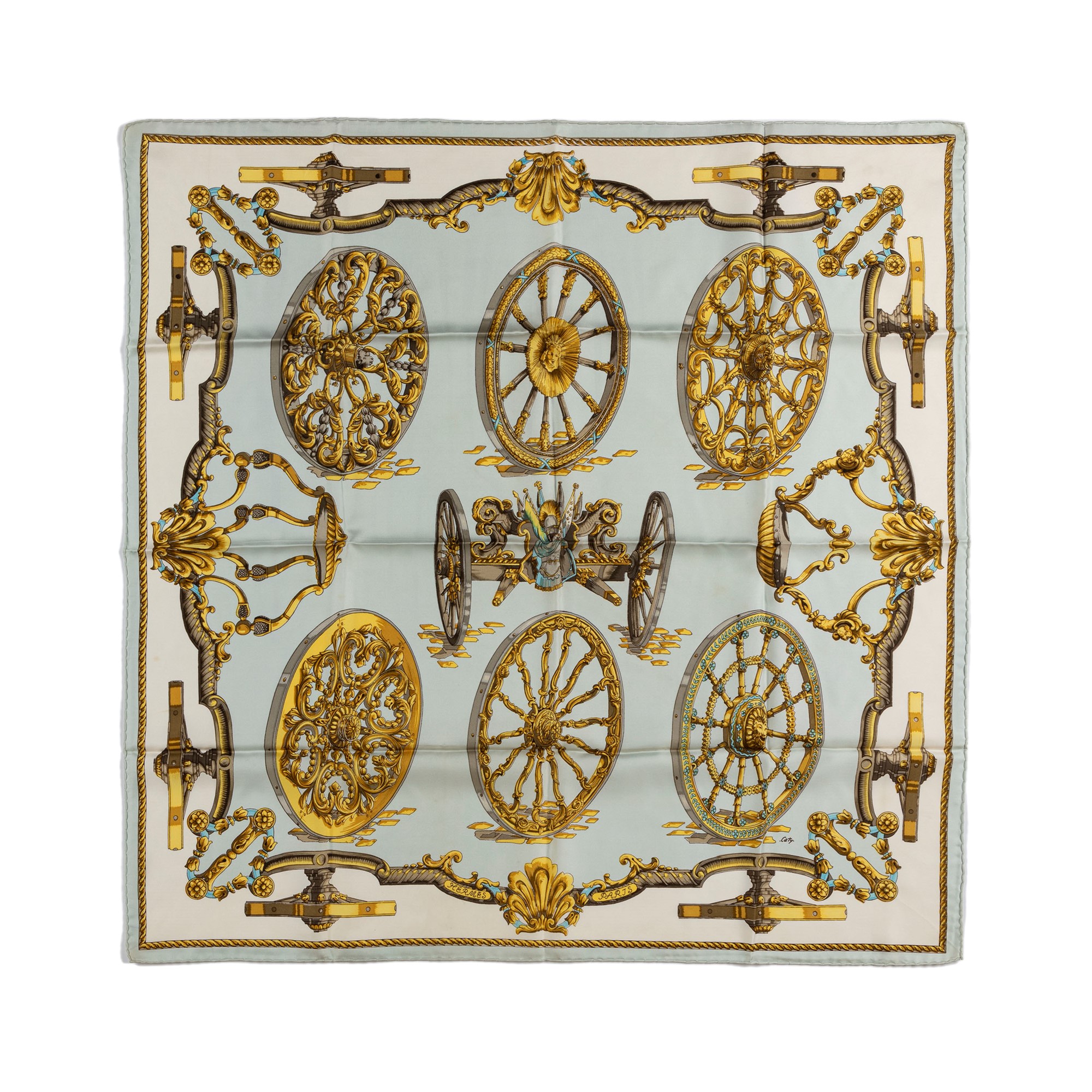 in seta su fondo e bordo color azzurro chiaro, Caty Latham.