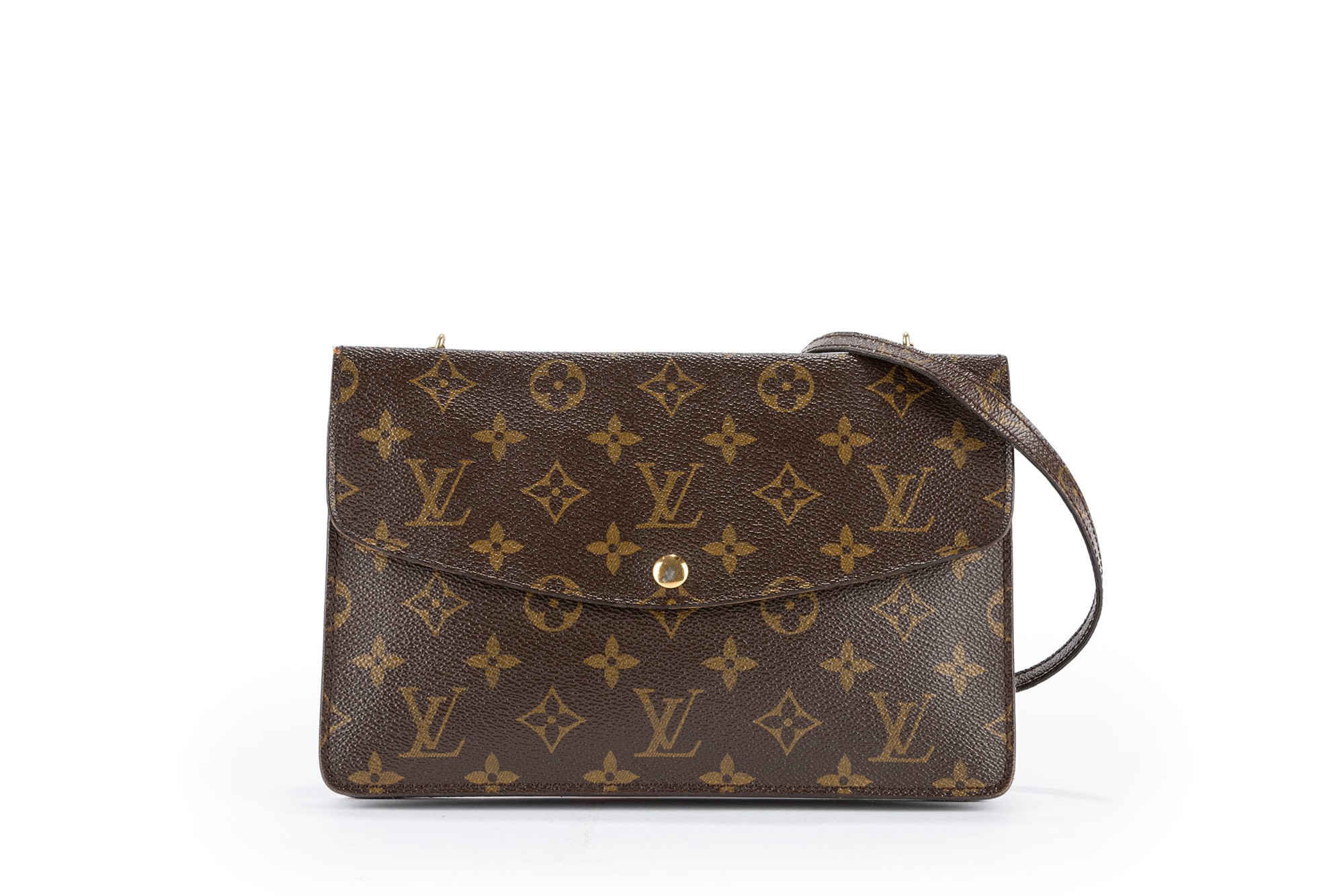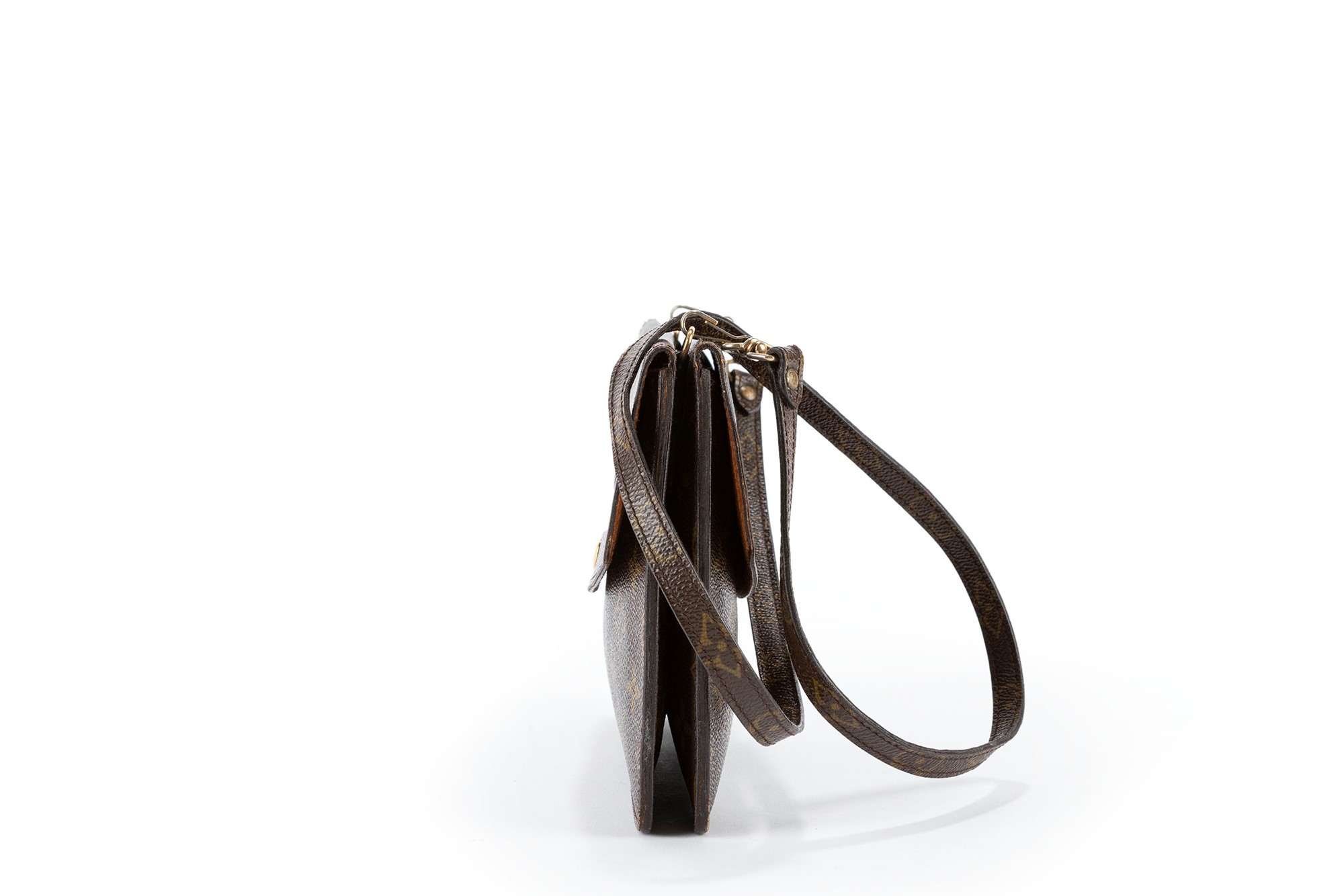 in tela monogram con tracolla staccabile, con sacchetto, cm 23,5 (lievi difetti).