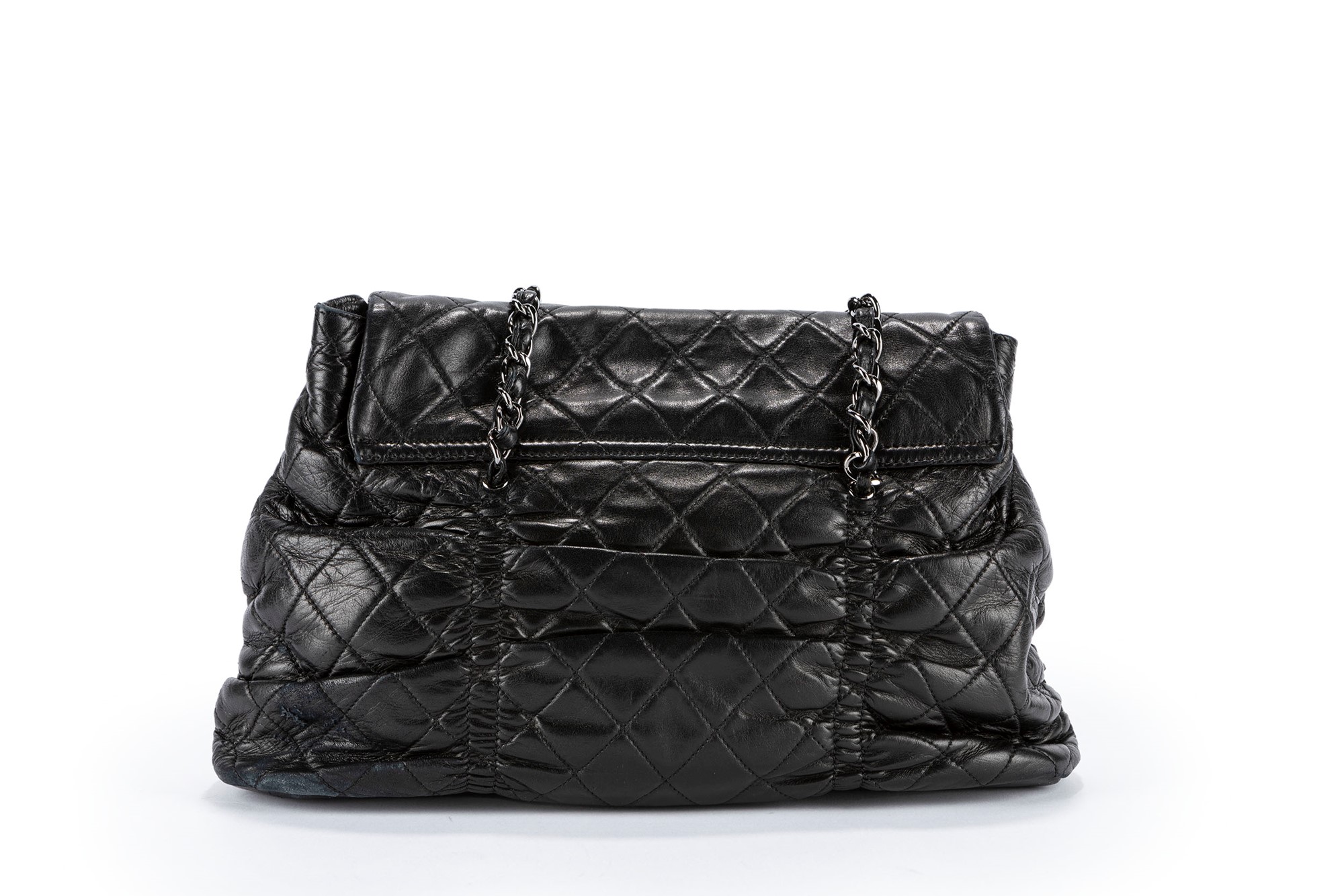 in pelle trapuntata color nero, doppi manici a catena, cm 35, con sacchetto (difetti).