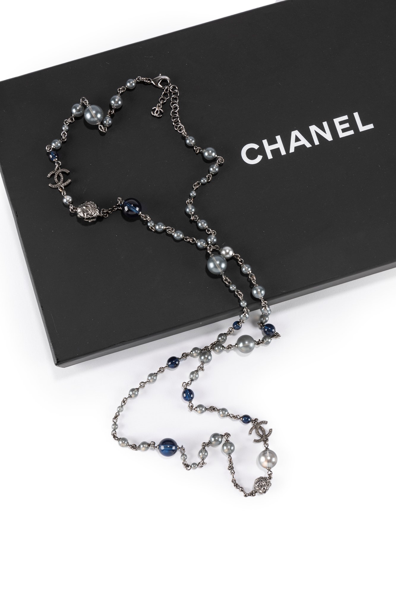 in metallo brunito con boules diverse color grigio e blu, cm 102, con scatola.