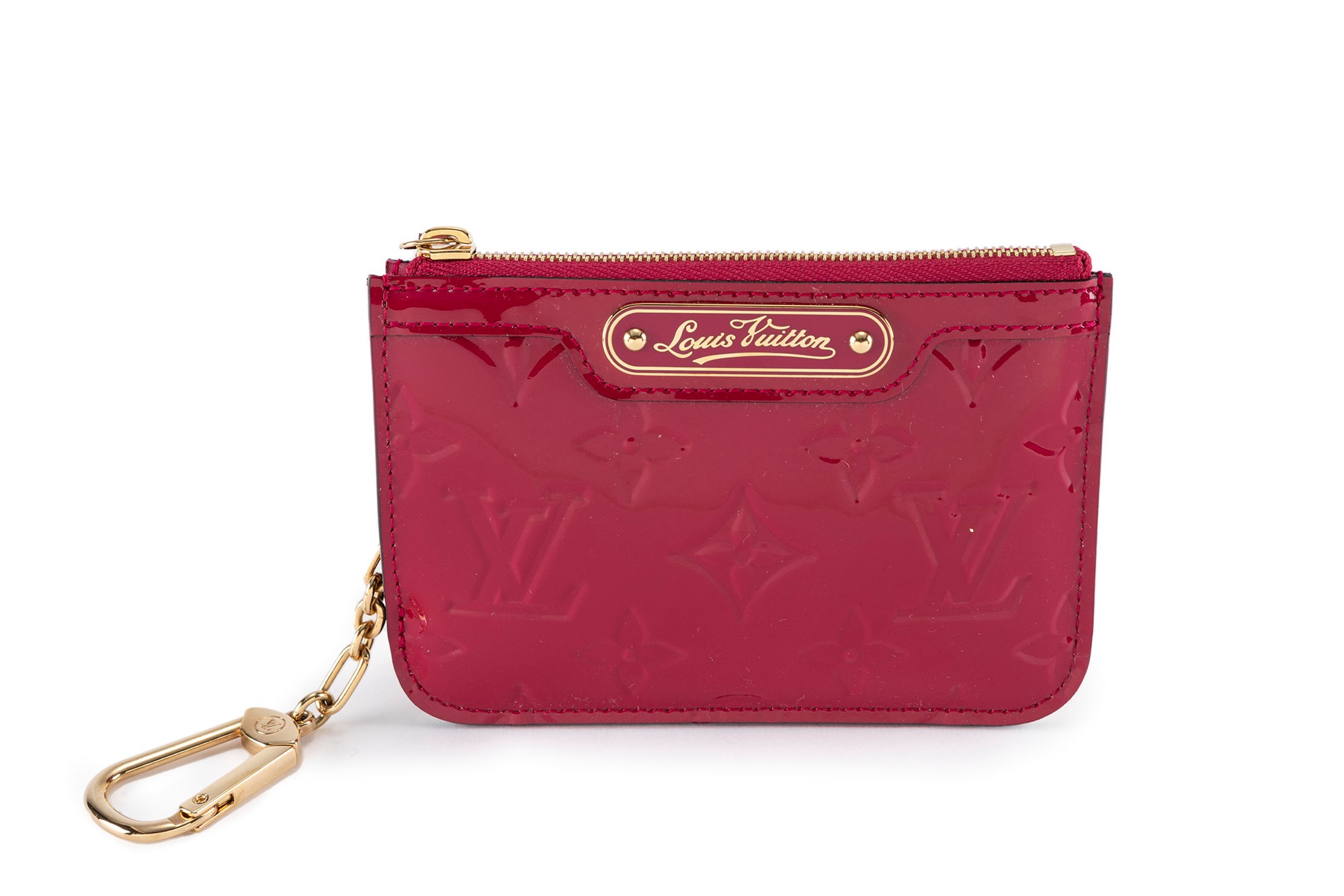 a bustina in monogram vernis color lampone, dettagli in metallo dorato, cm 13 x 9, con sacchetto (nuovo mai usato).