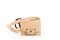 in pelle color cipria con cintura regolabile e tracolla in metallo a catena staccabile, cm 14, con sacchetto.