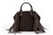 in pelle di camoscio color marrone, doppi manici, dettagli in metallo ed applicazioni di frange sui lati, cm 35, con sacchetto (lievissimi difetti).