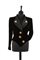 in velluto di seta color nero con bottoni gioiello in metallo dorato e strass, revers in raso ton sur ton, fodera in raso di seta, tg 40 (lievi difetti).