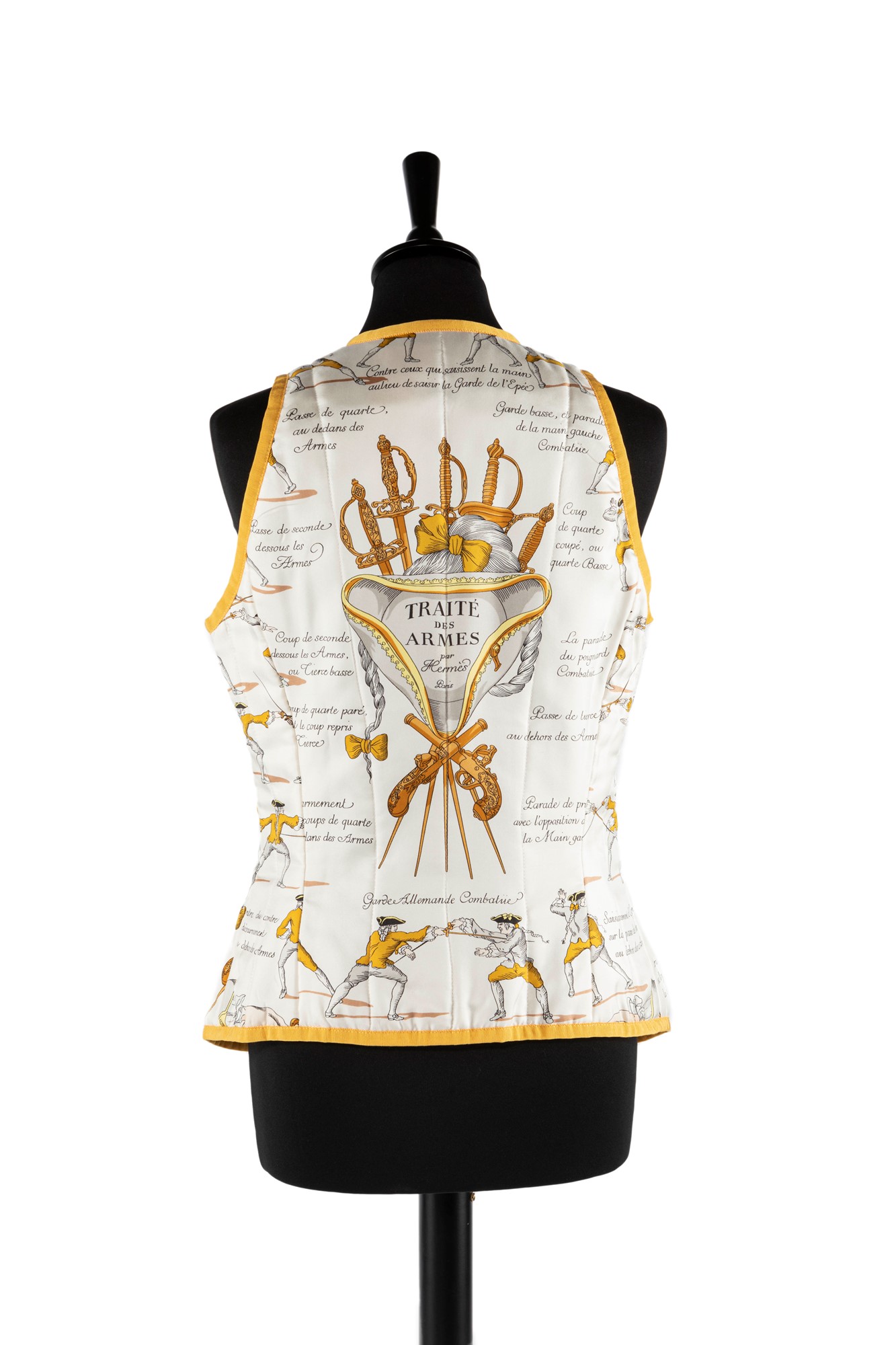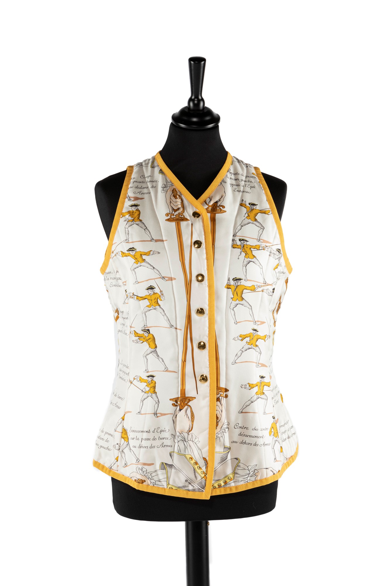 color panna con profili in gros grain color senape, bottoni clou de selle in metallo dorato, tg 40.