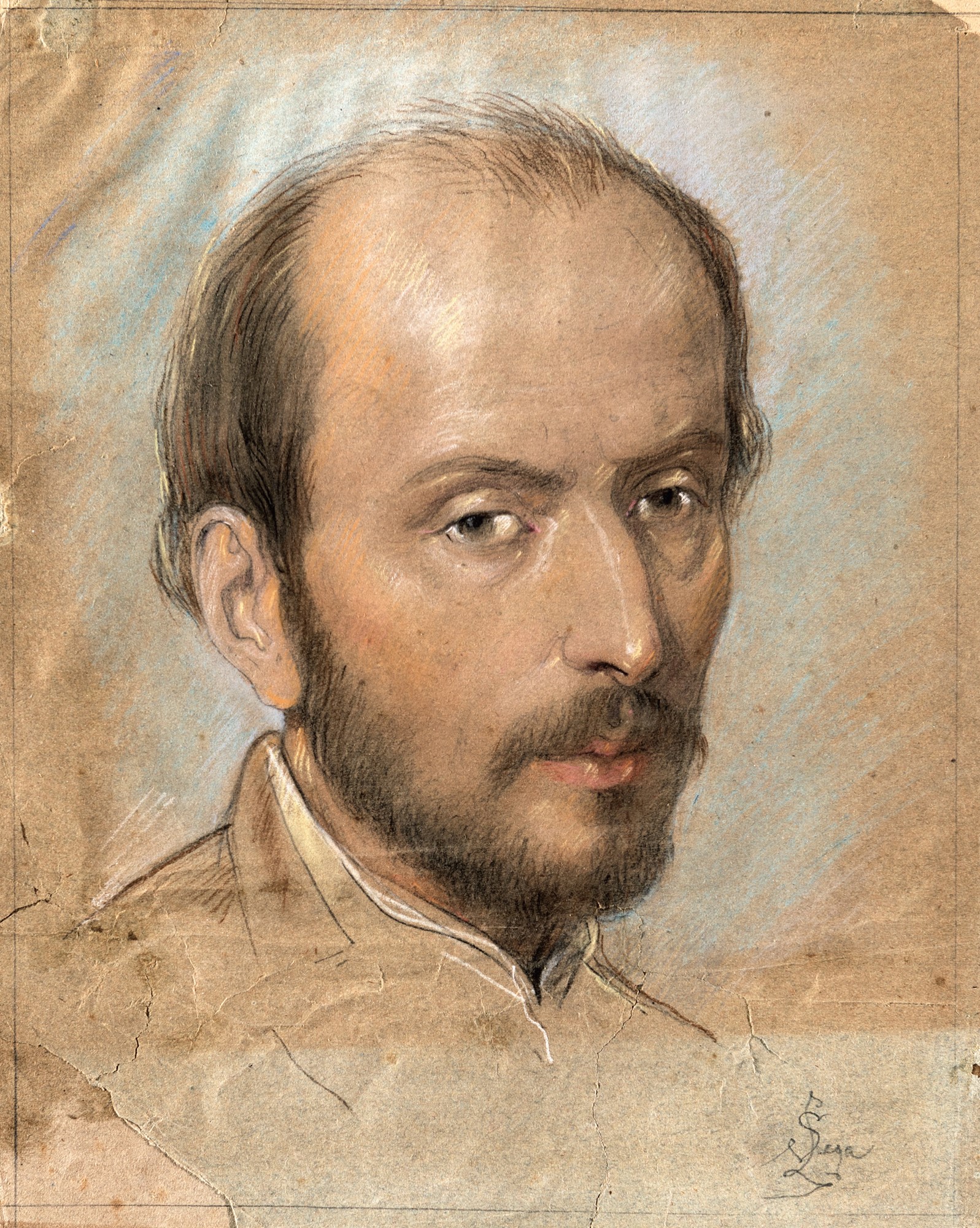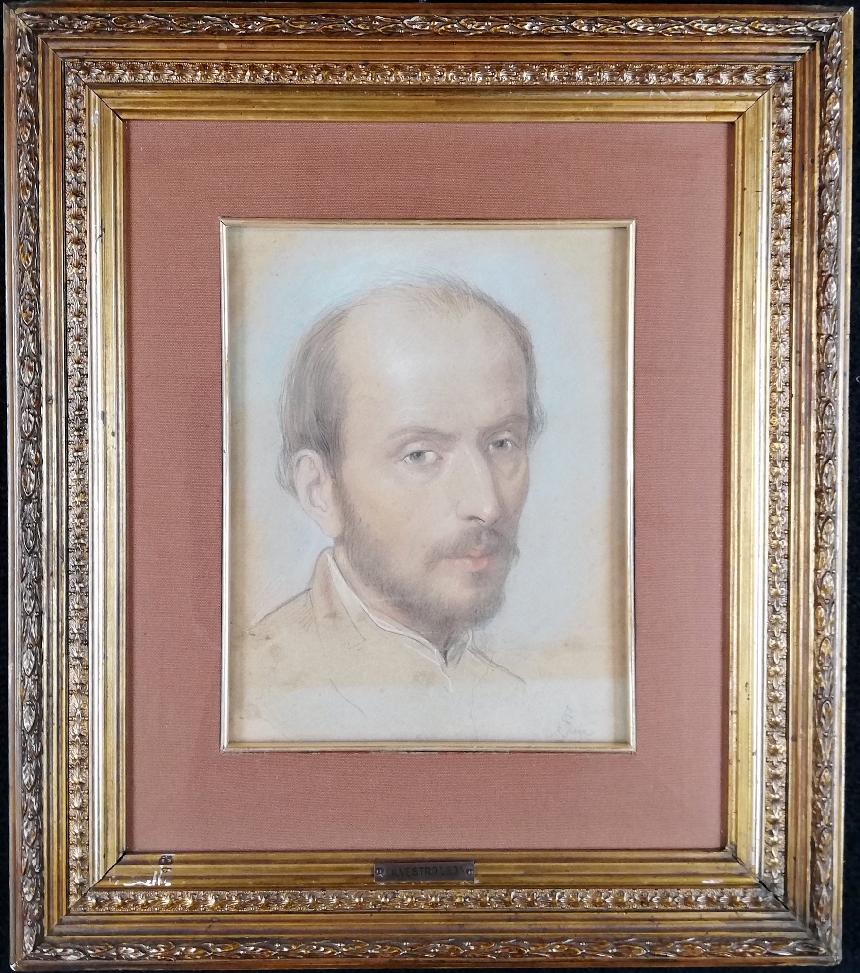 Lega, Silvestro (Modigliana, 1826 - Firenze, 1895) Ritratto maschile/bozzetto per autoritratto matita e pastelli su carta cm 30x24 - con la cornice: cm 50x43