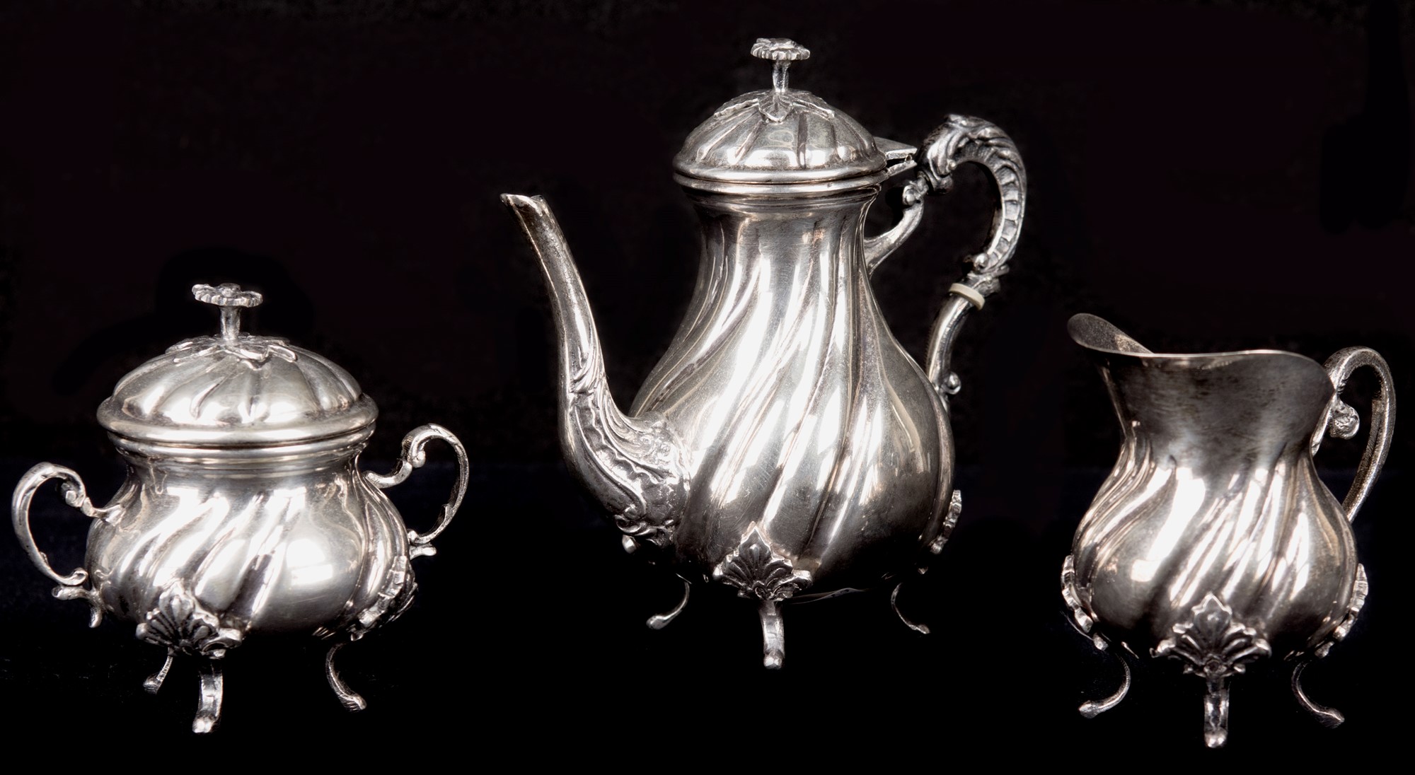 Servizio solitaire in argento 800/1000 altezza cm 15, cm 9 e cm 10 - gr. 610