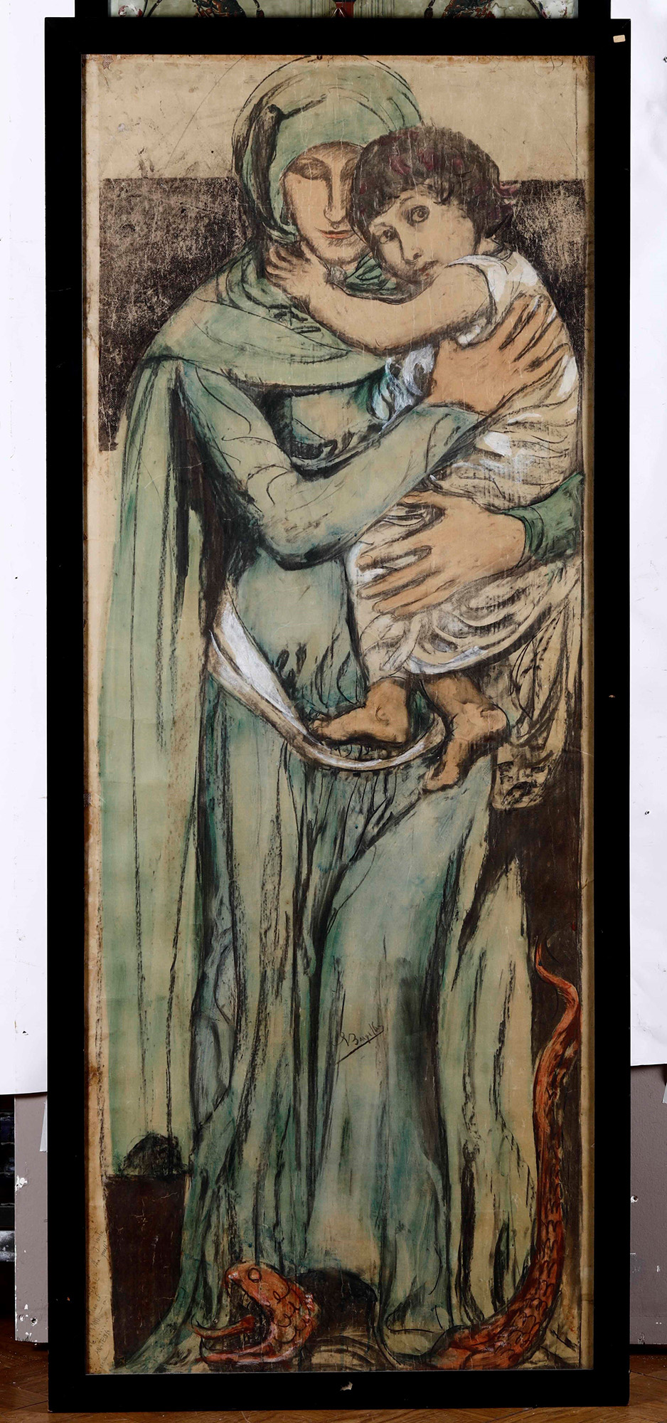 Giulio Bargellini (1869 - 1936), due tecniche miste su carta, una con Madonna con , Bambino e una raffigurante grottesche, cm 160x65 e cm 198x56