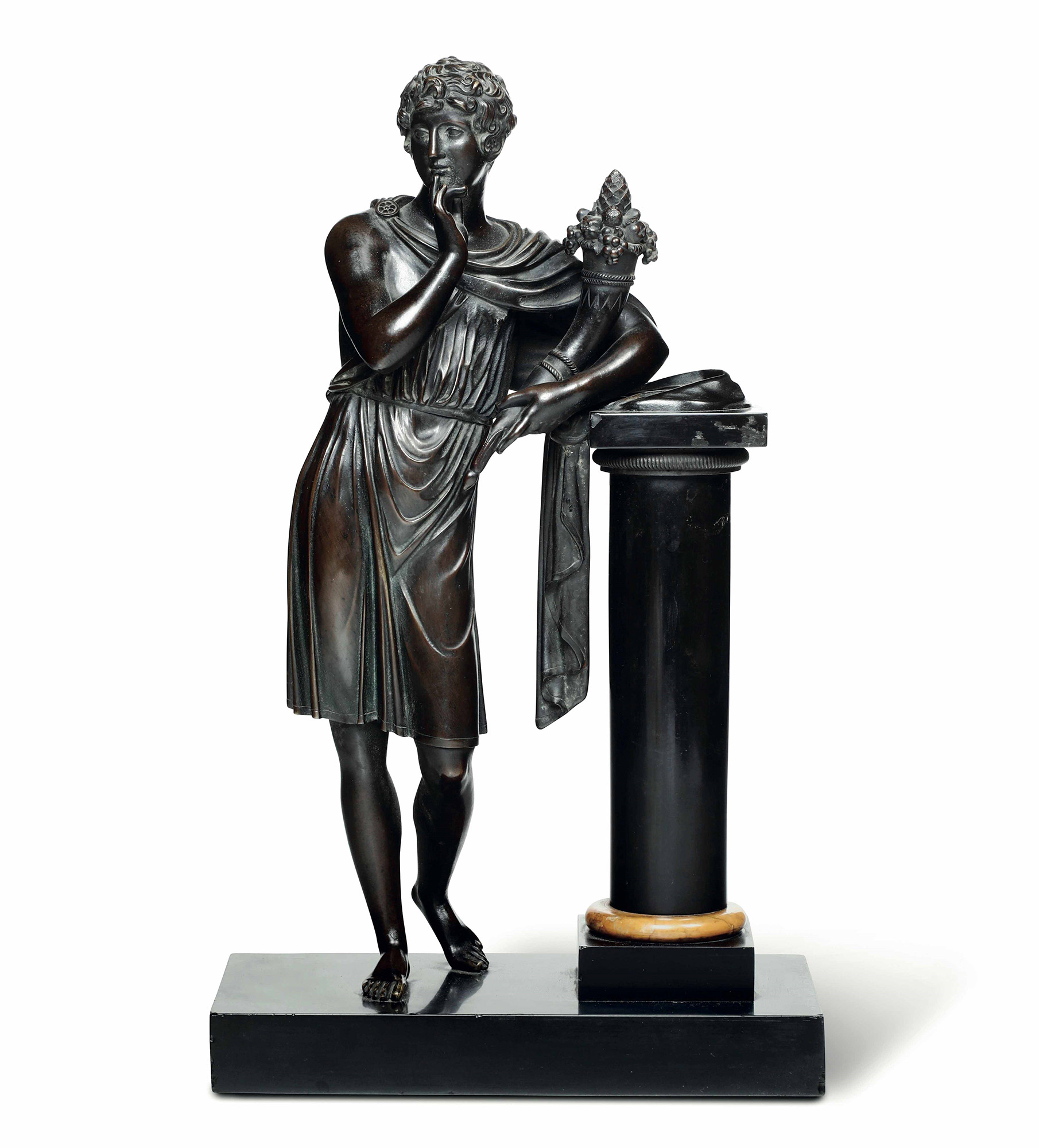 Lotto 45 | Figura mitologica con cornucopia, colonna e base in marmo Bronzista del XX secolo