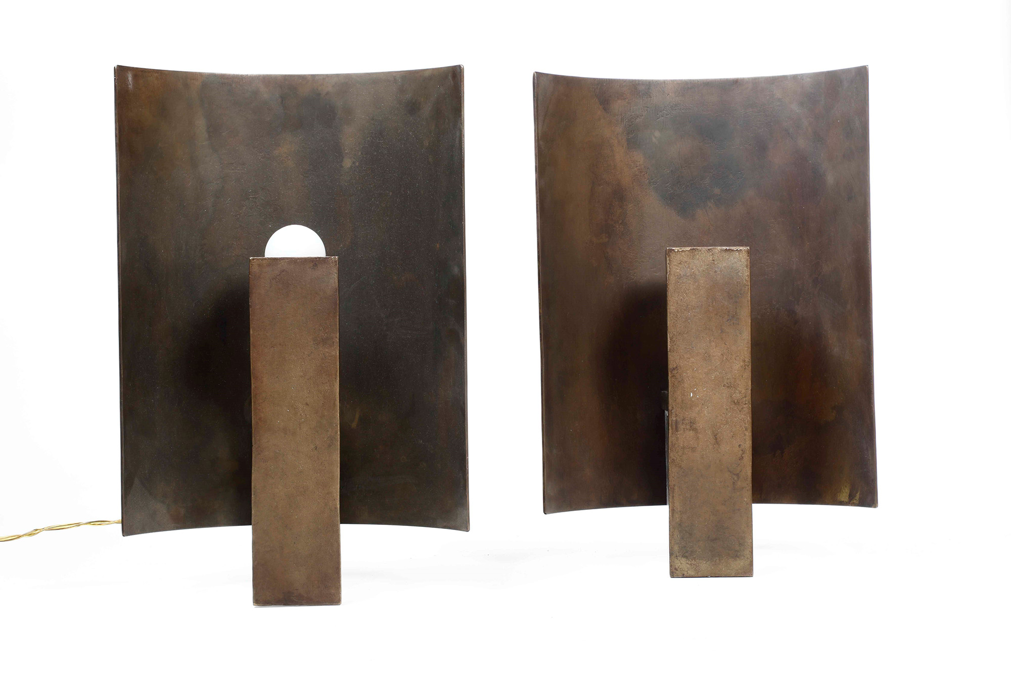 Coppia di appliques semicircolari in bronzo, XX secolo