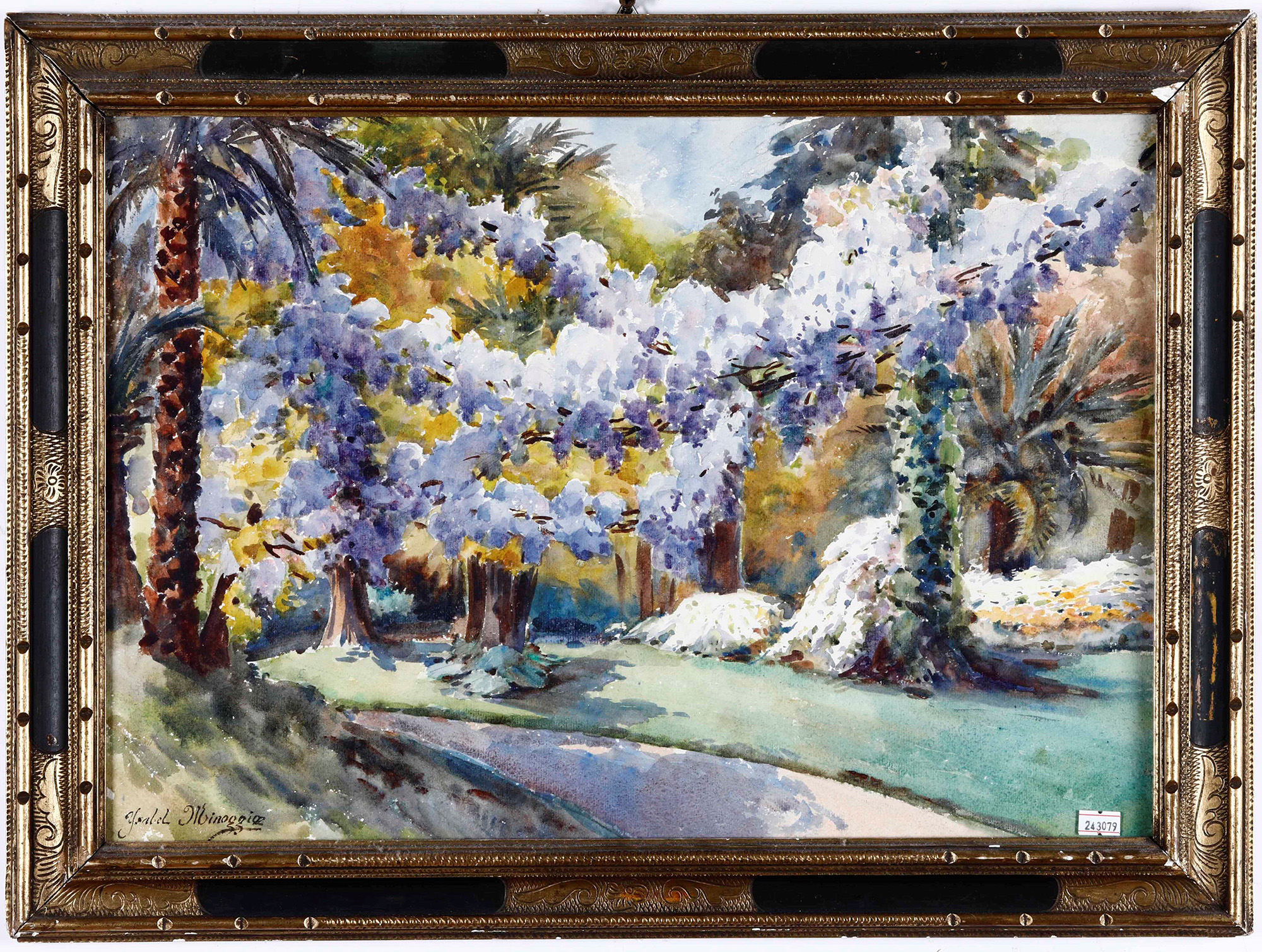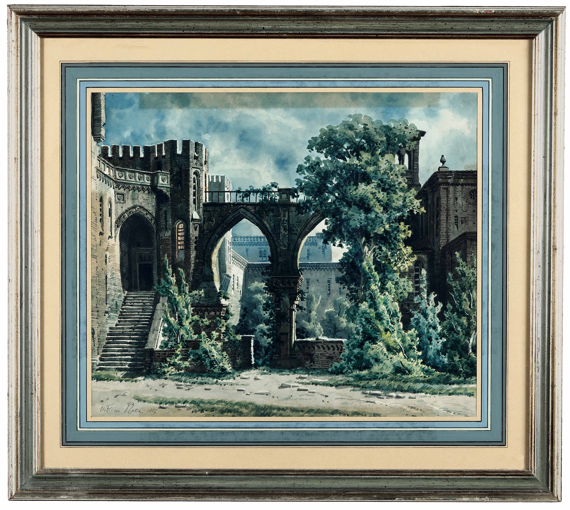 Paesaggio con architetture Vittorio Rota (1864 - 1931), acquerello 1837, cm 34x41, nel lotto altro acquerello di Ysabel Minoggio