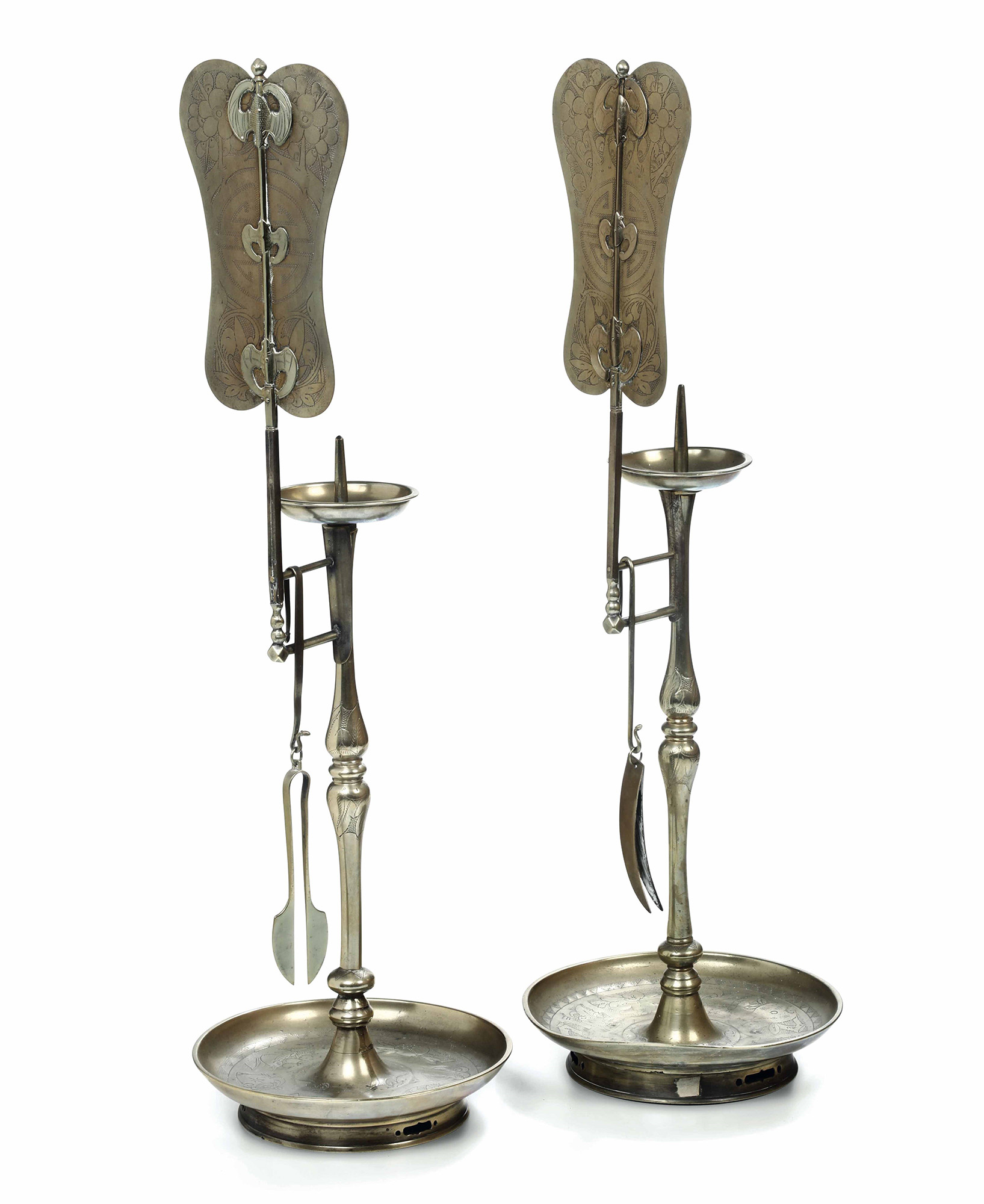 Coppia di candelieri in bronzo e rame. Giappone XIX secolo