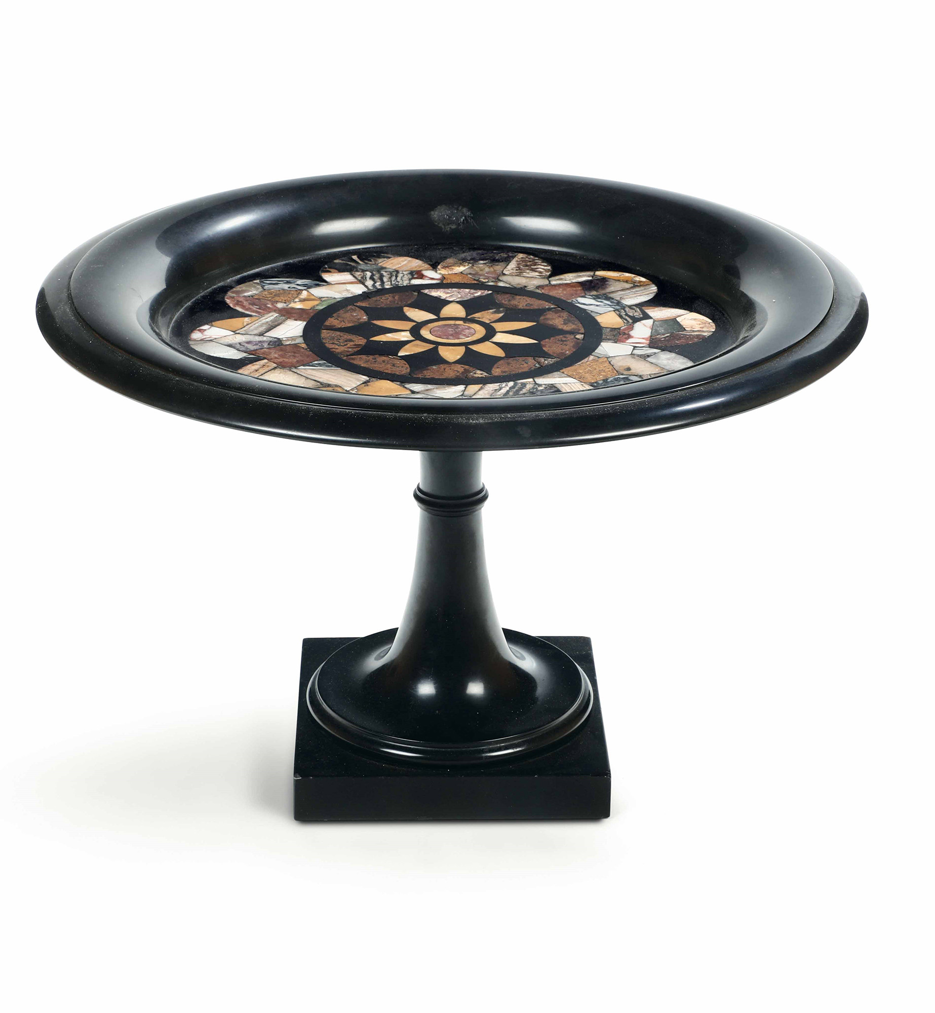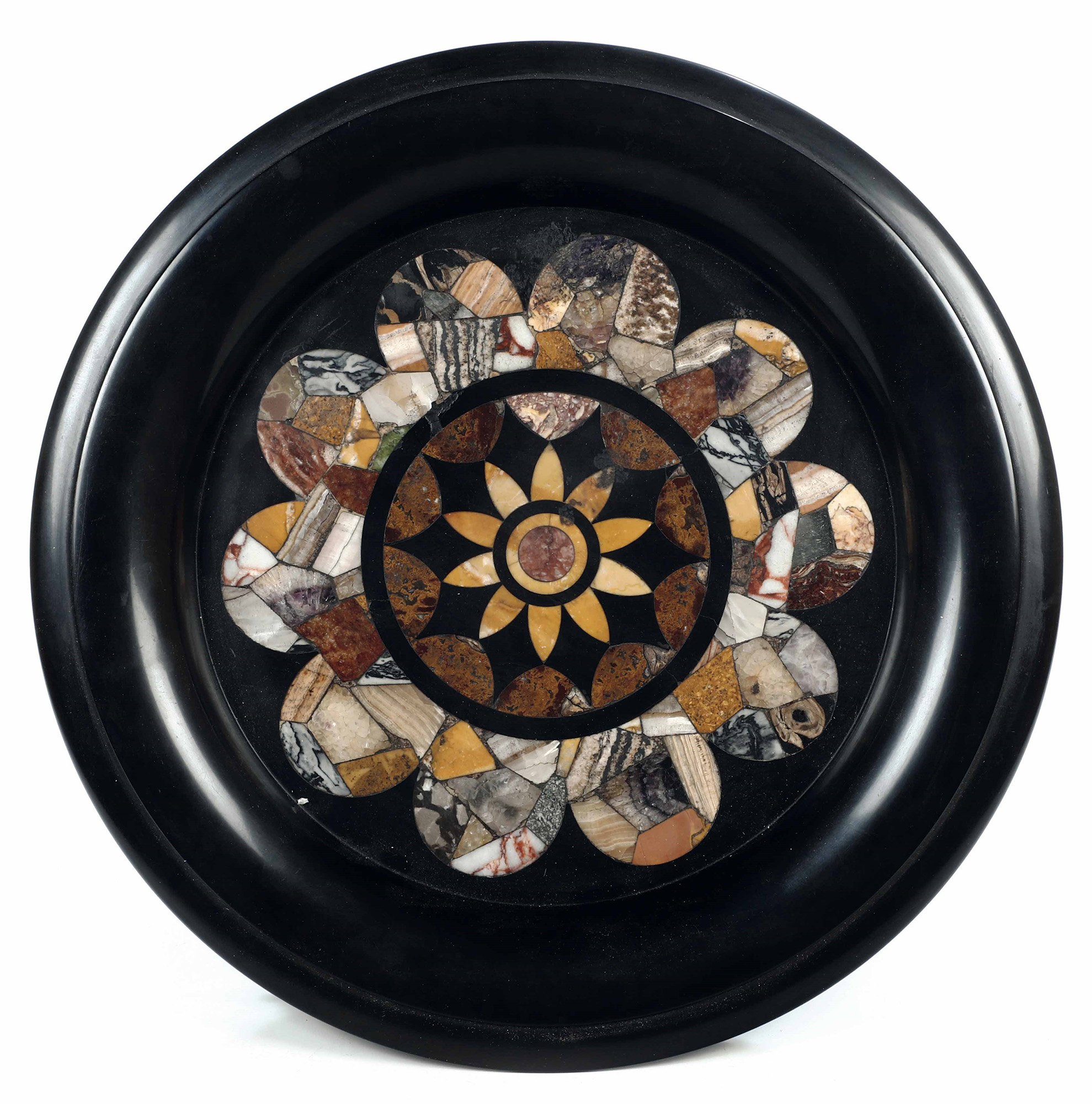 Coppa in nero del Belgio con commesso di marmi policromi, XX secolo