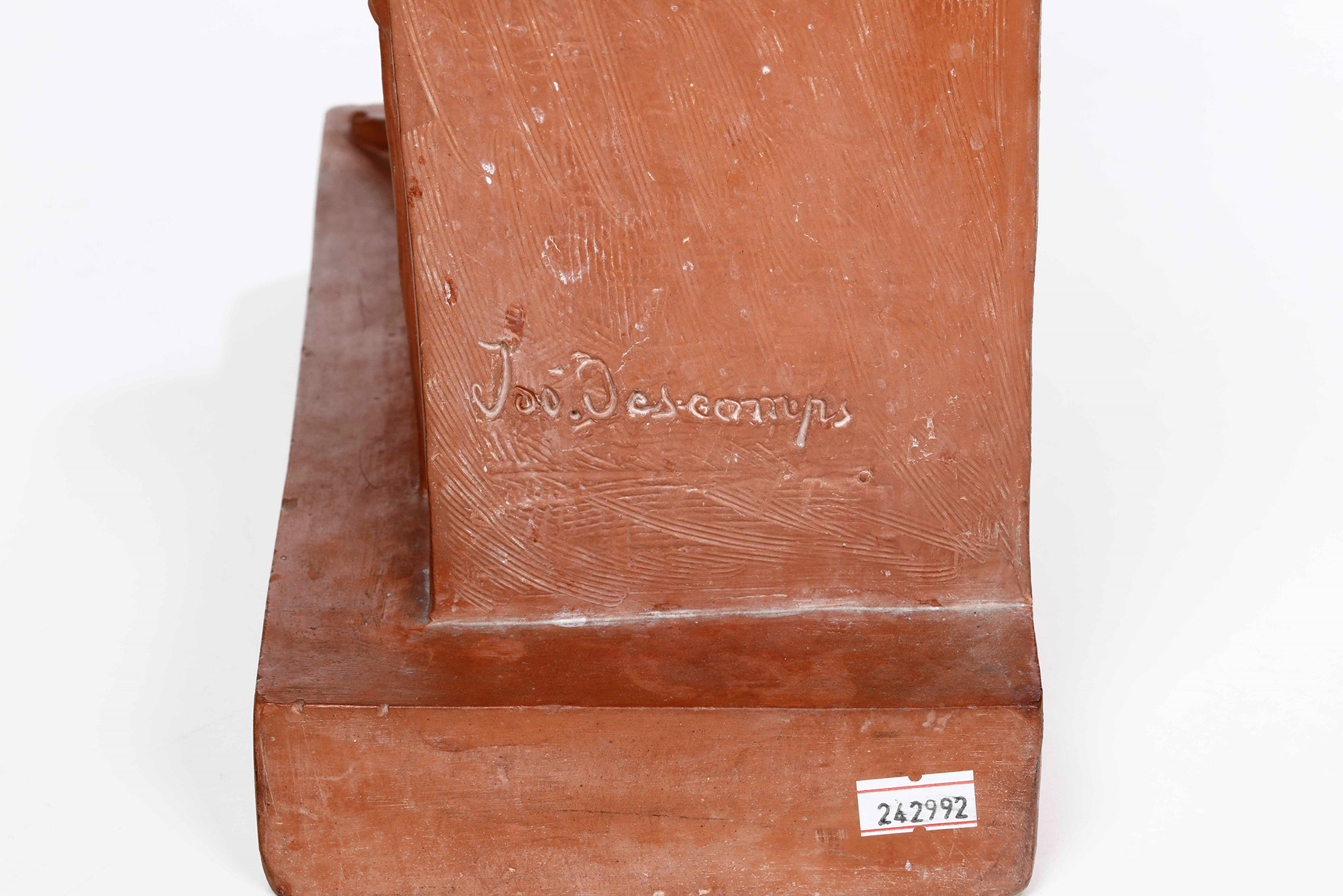 Figura femminile seduta con anfora Joe Descomps (1869 - 1950), Terracotta, firma incisa alla base, H. 47 cm