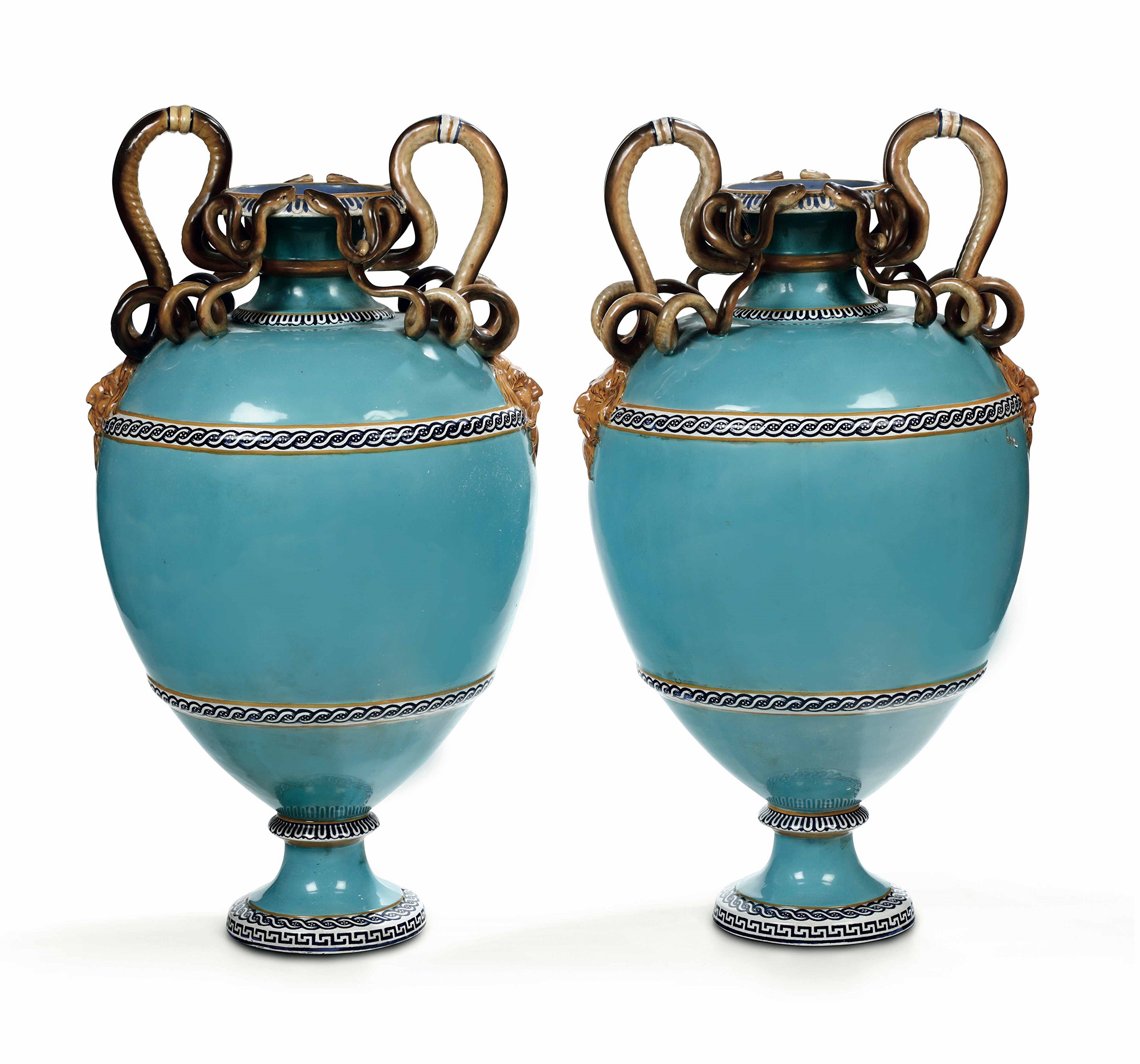 Lotto 132 | Coppia di vasi in ceramica ad anfora Minton, XIX secolo