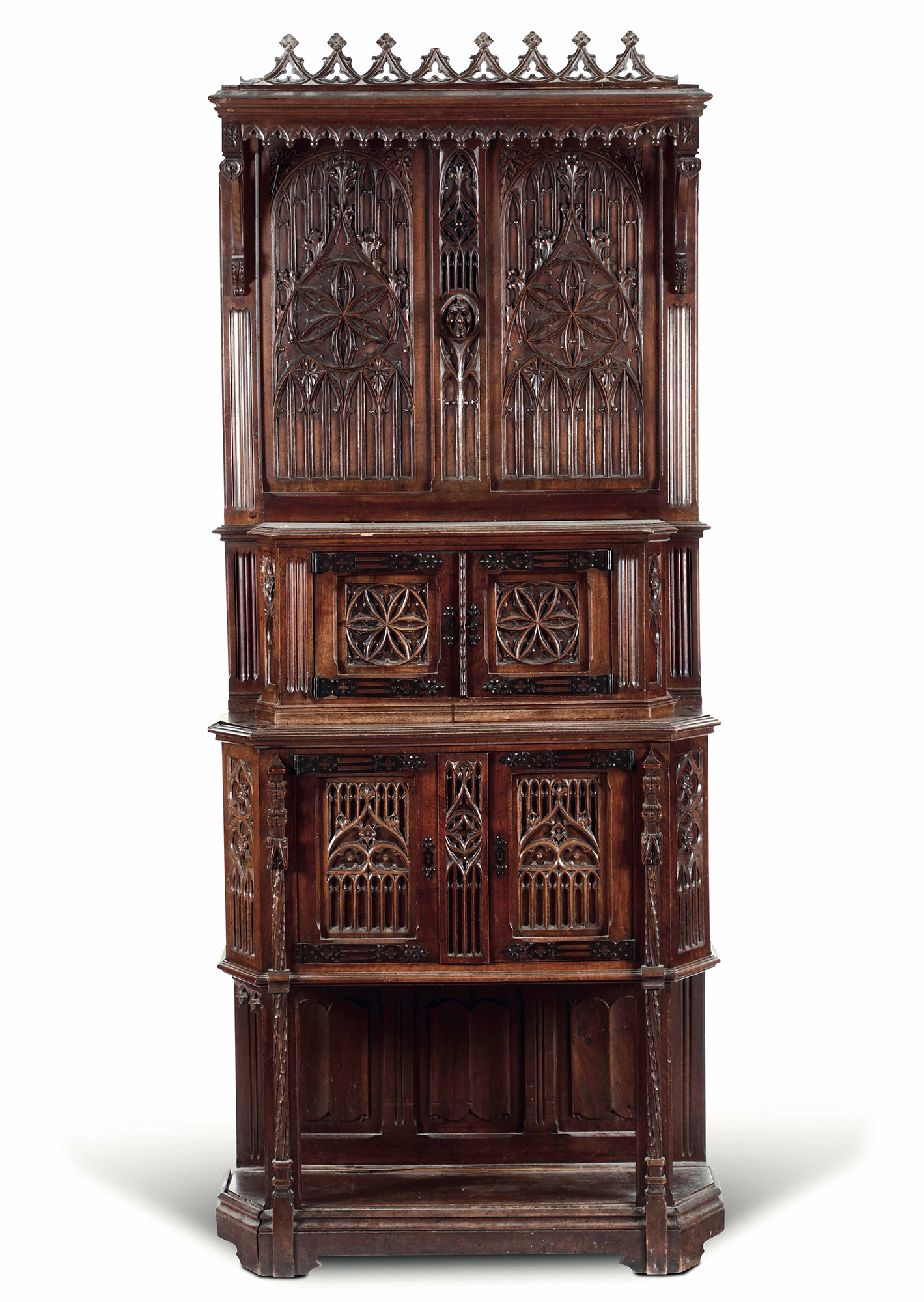 Mobile stipo in legno intagliato di gusto neogotico. XX secolo