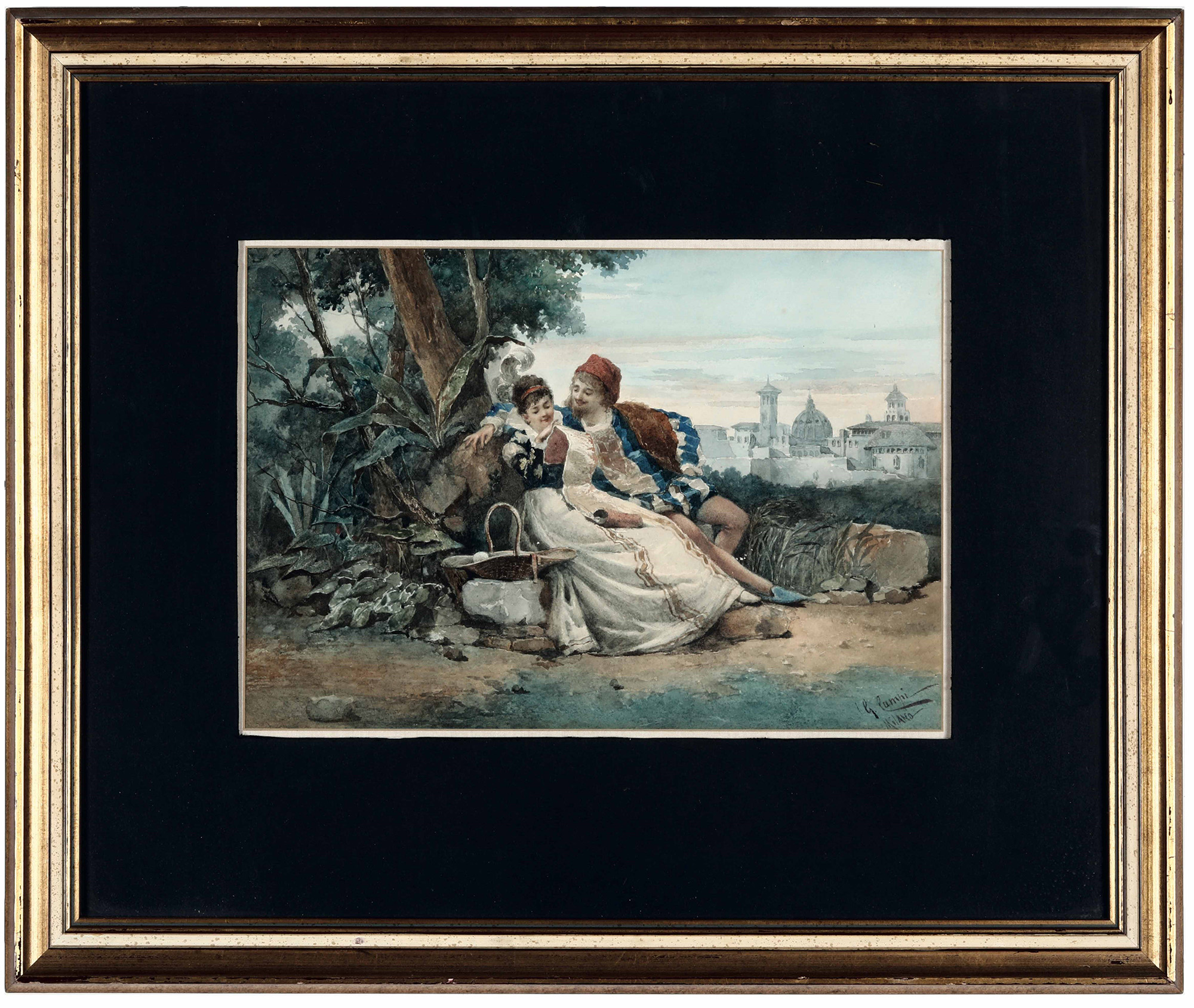 Scena galante Giacomo Campi (1846-1921), acquerello su carta, firmato in basso a destra, W. 37 - H. 25 cm
