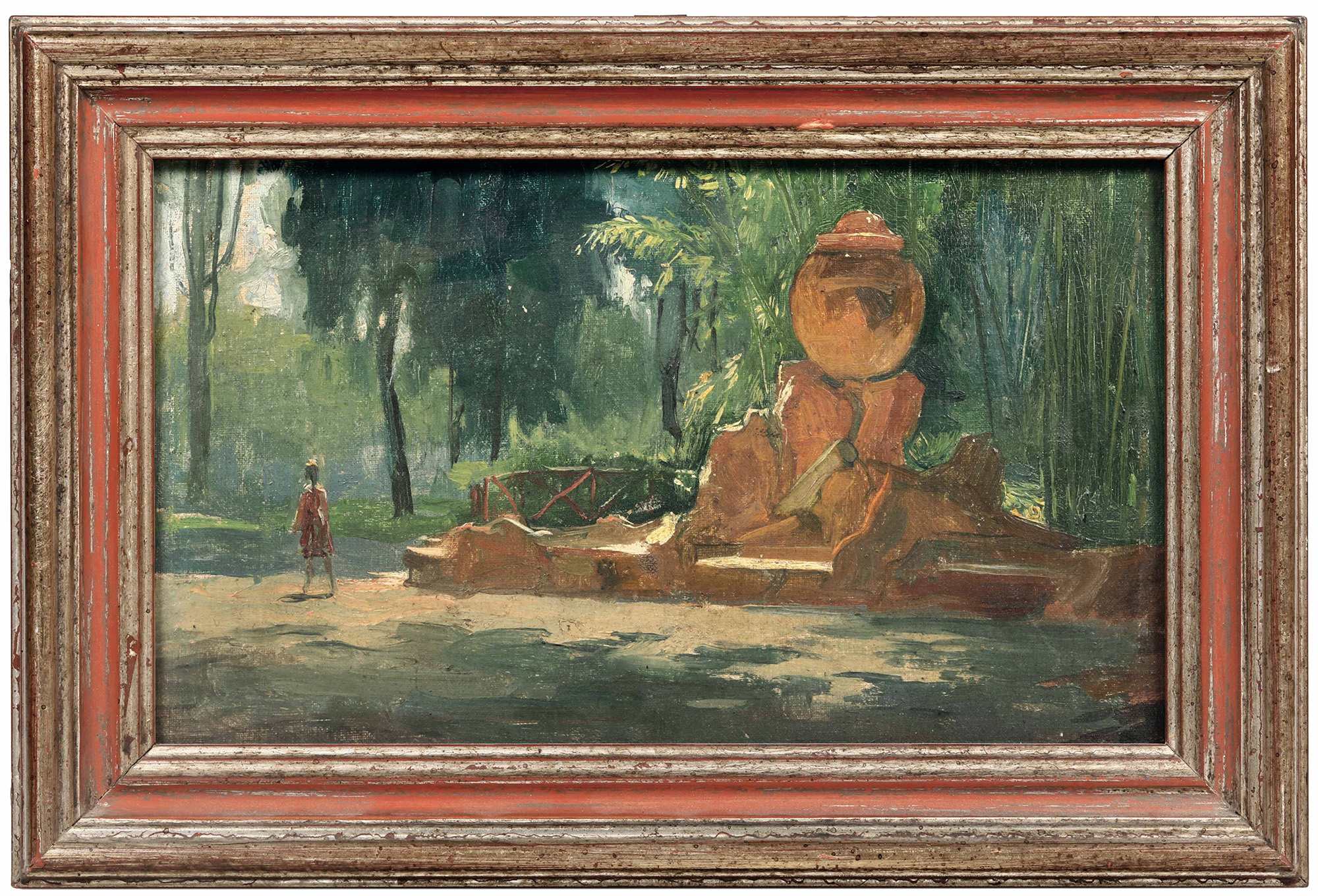 Scorcio di villa Anonimo, XX secolo, olio su tavoletta, cm 14x23