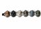 Bracciale con montatura in oro a basso titolo e inserti di protomi femminili in pietra lavica (?)