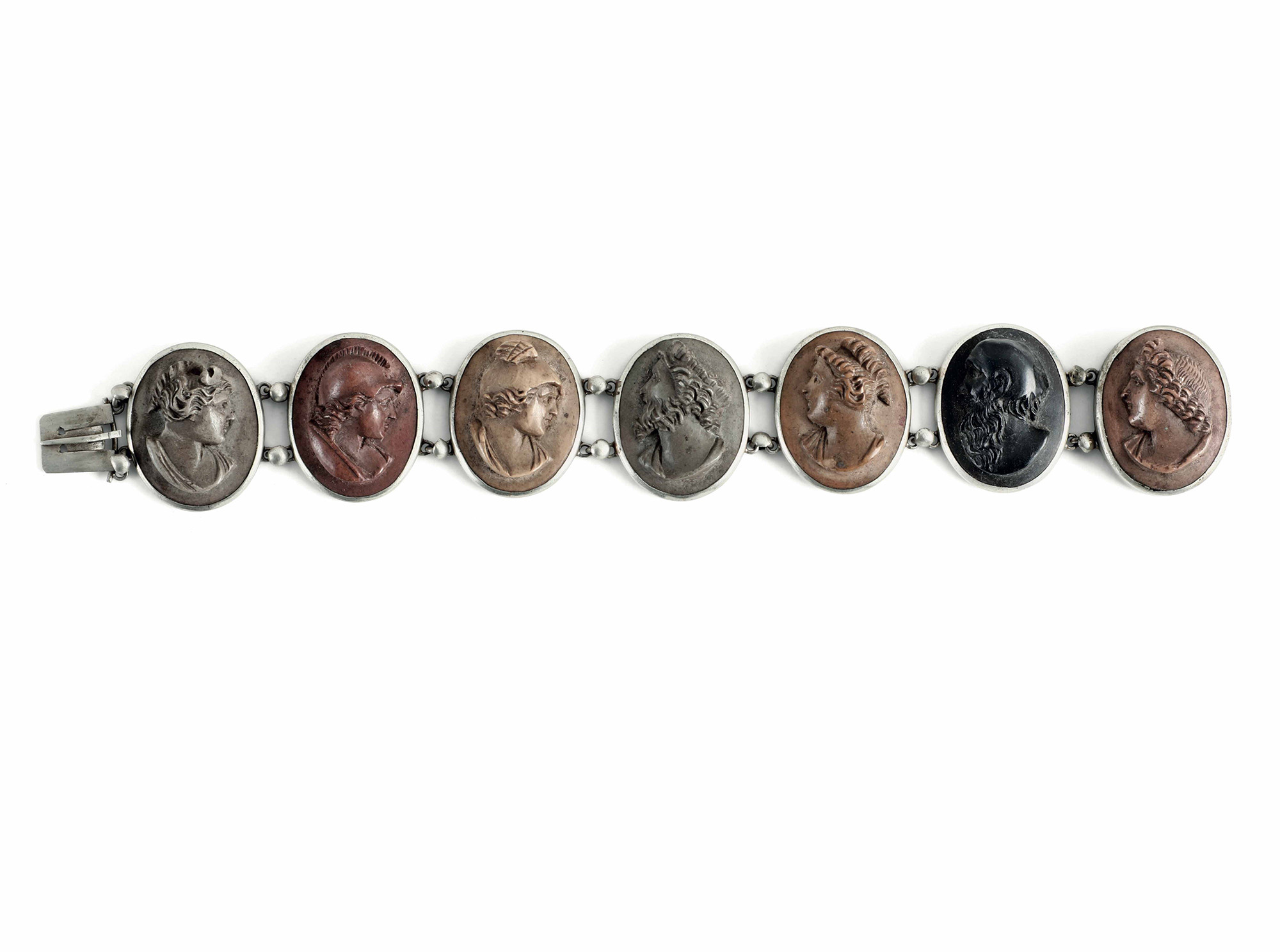 Bracciale con montatura in argento e inserti di profili classici in pietra lavica (?) XIX-XX secolo