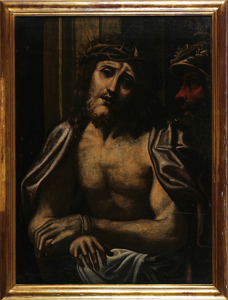 ARTISTA DEL XVIII SECOLO Ecce homo. Olio su tela. Cm 60,00 x 80,00. . Cornice presente