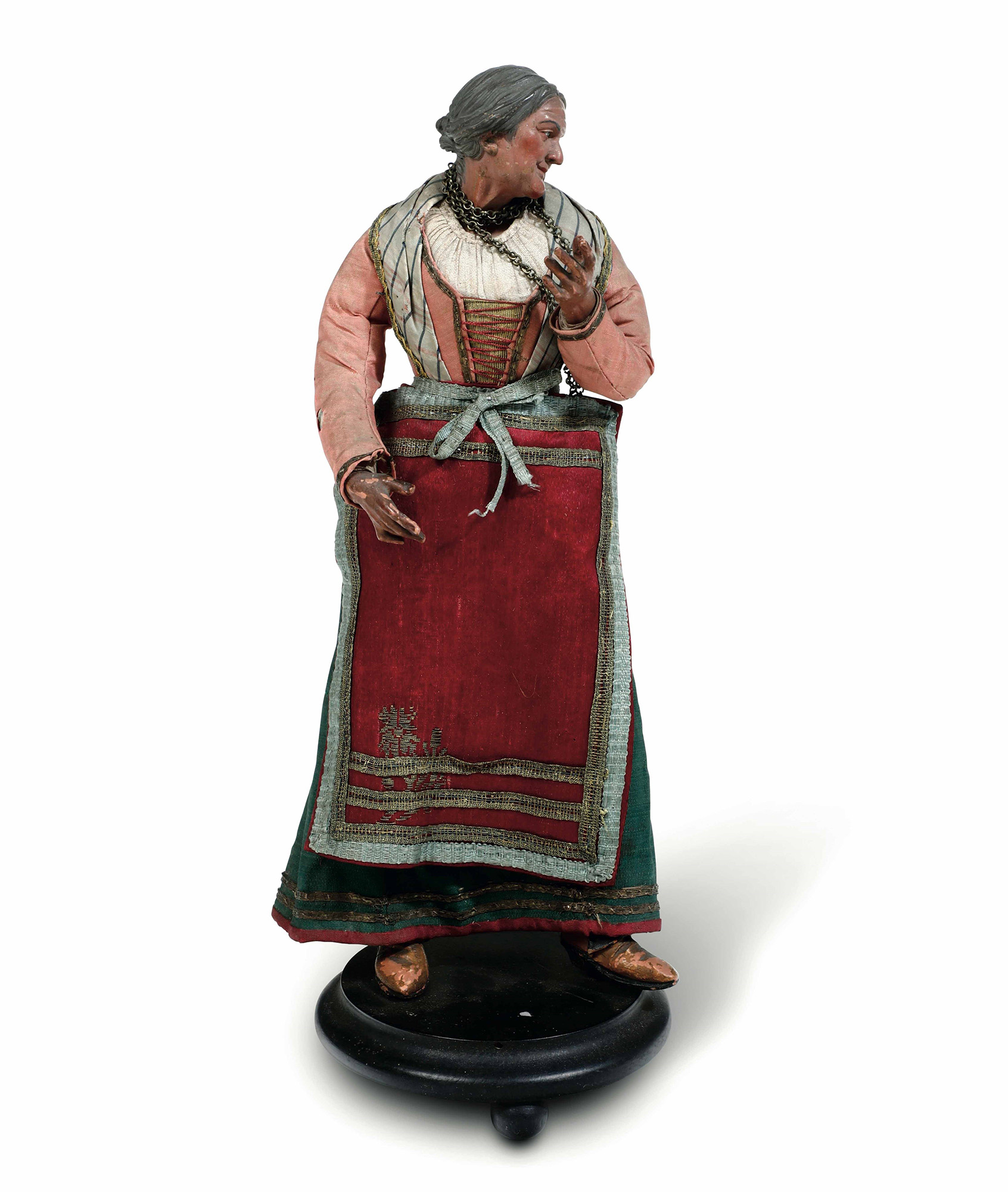 Precedente Lotto 440 Successivo Cambi Casa d'Aste - Castello Mackenzie, Mura di San Bartolomeo 16, 16122 Genova Asta N. 677 - Dimore Italiane Seconda Sessione giovedì 25 novembre 2021 ore 15:00 (UTC +01:00) Anziana con vestito rosso. Napoli XIX secolo Anziana con vestito rosso. Napoli XIX secolo, H. 28 cm