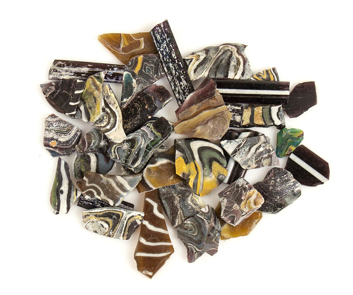 GRUPPO DI 37 FRAMMENTI DI VETRO COLORATO