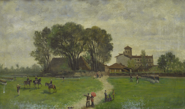 Lotto 206 | Scuola Europea XIX sec. ESERCITAZIONI MILITARI Olio su tela, cm. 29,5x45