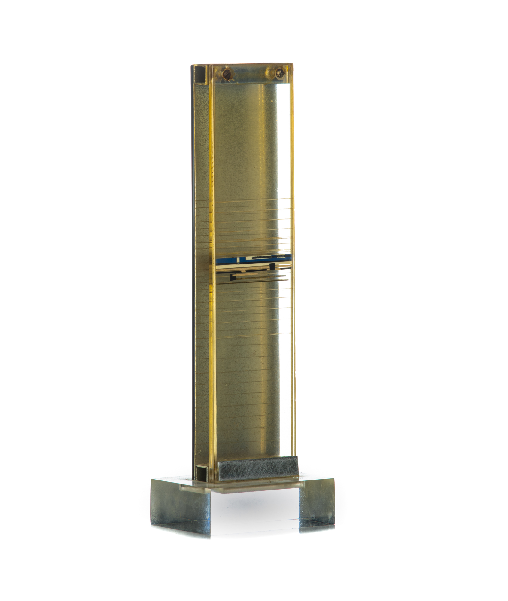 Scultura in plexiglas sovrapposti, alluminio, cm. 22 x 7,5 x 5