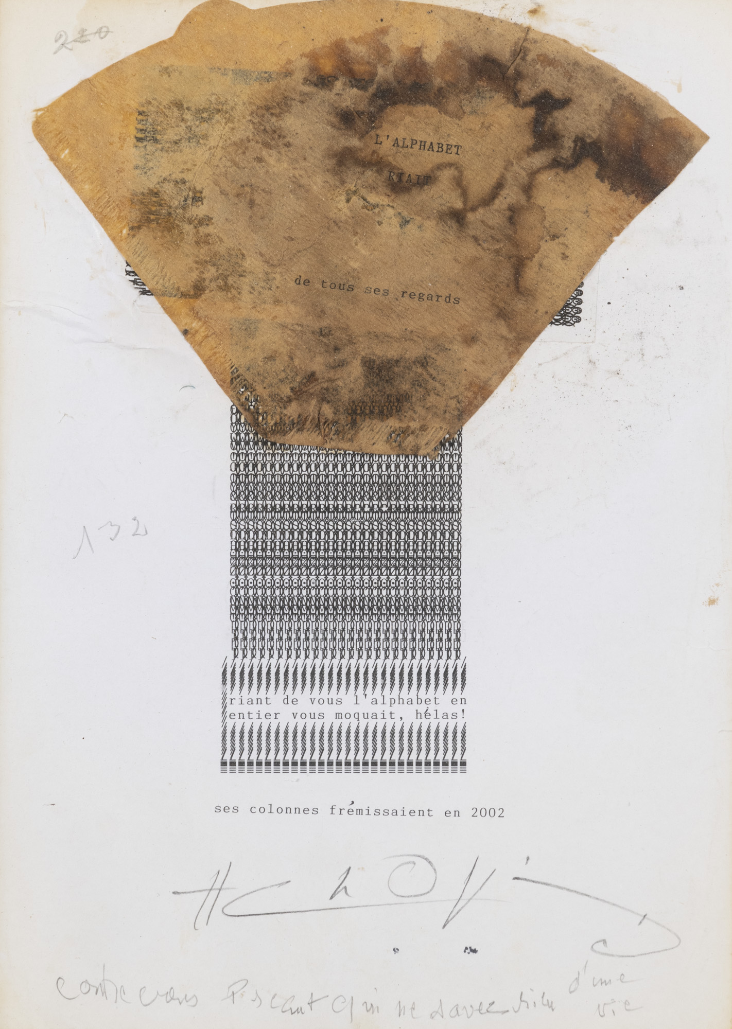 Inchiostro dattilografico, grafite e collage su carta, cm. 29 x 21