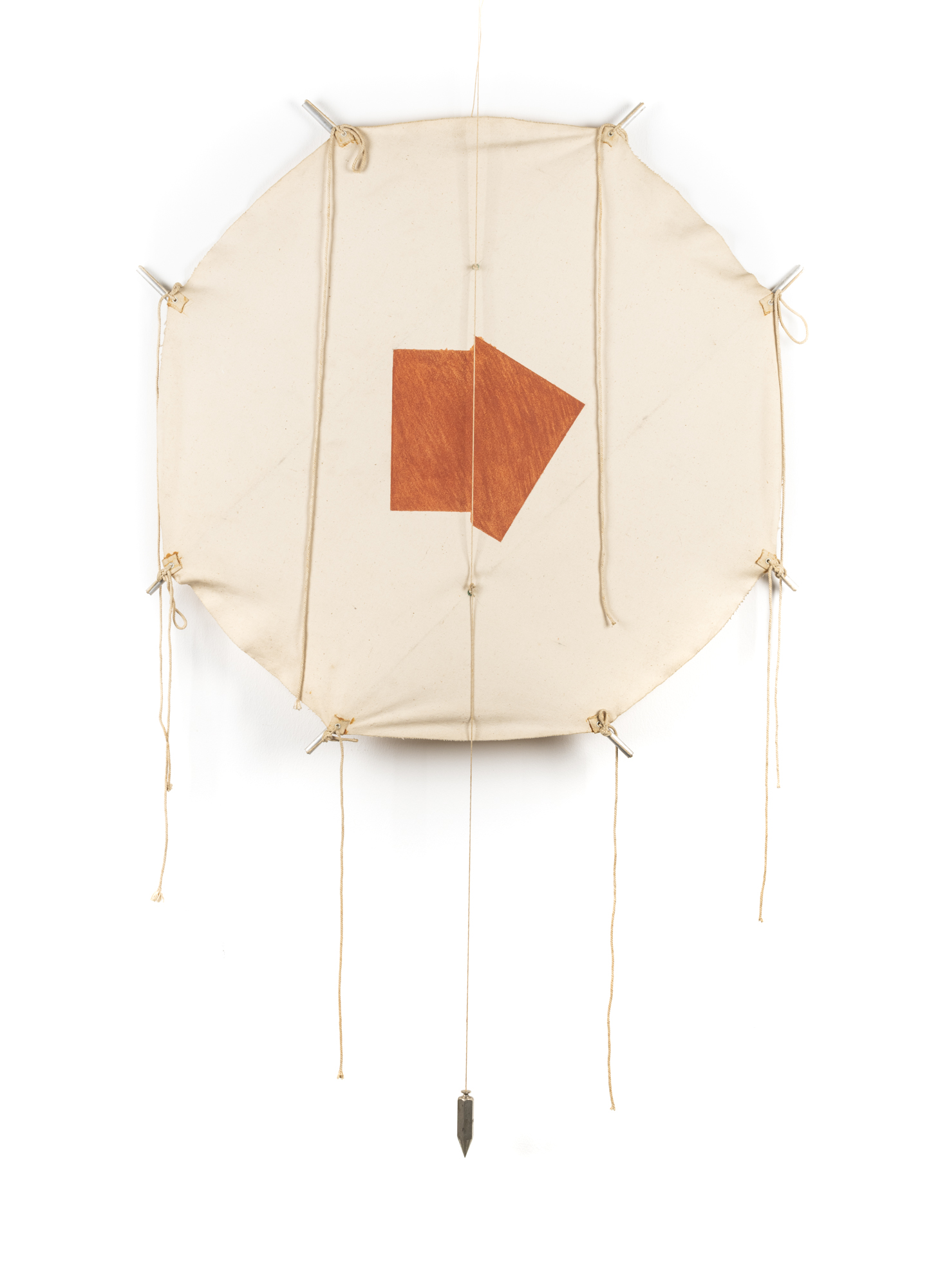 Acrilico su tela, bacchette di alluminio e corda, piombino, diametro cm. 80 (ingombro totale h. cm. 172)