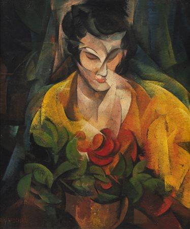 ROBERTO MARCELLO BALDESSARI Donna con fiori rossi [Salotto giapponese 2°], 1918 circa